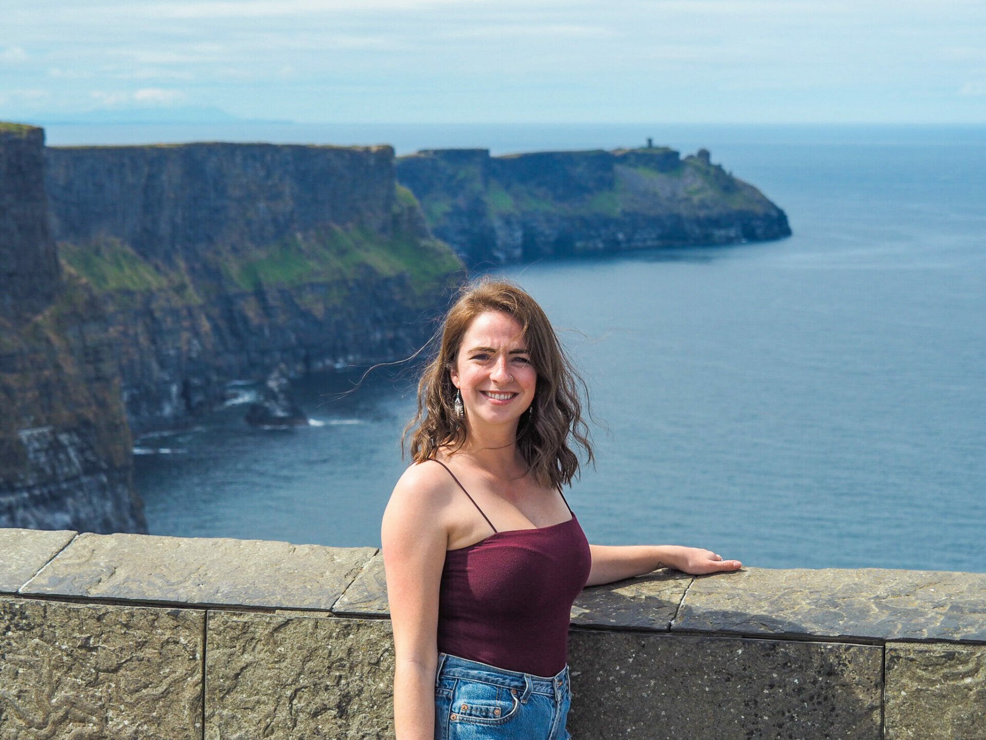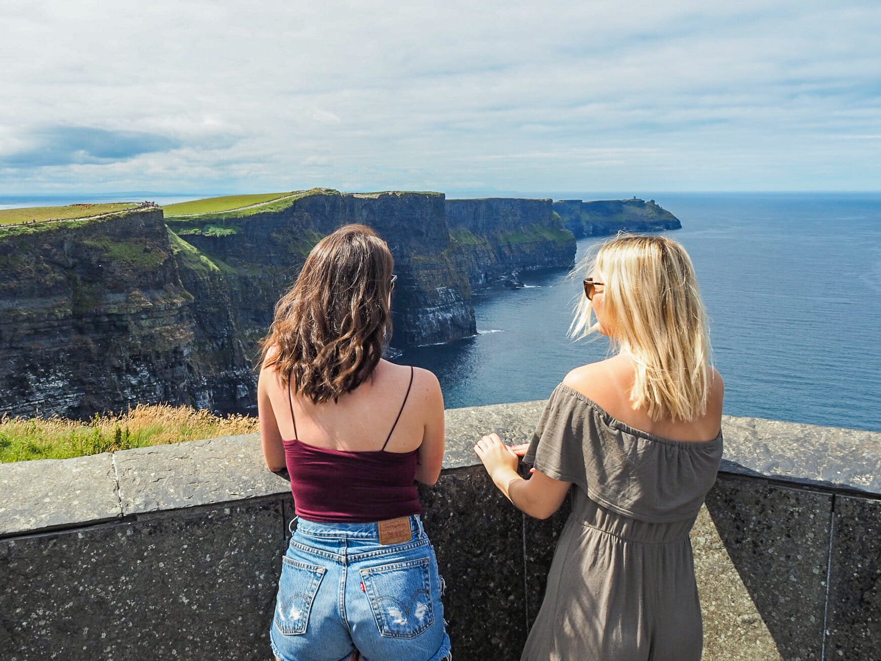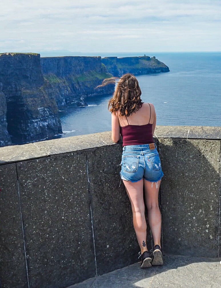 It’s around 11am before we reach the Cliffs and are given several hours to explore the vast network of paths and viewpoints on our own. Josey and I immediately set out, stopping frequently for photos of the dramatic coastline as it plunges to the Atlantic below, and it’s not long before I am, yet again, overwhelmed by the beauty of Ireland. Although some of the walkway nearest the Visitor’s Centre is separated from the Cliff by a short rock wall, we only have to walk about 10 minutes before there is nothing between us and the edge, making for some incredible views and amazing photos.