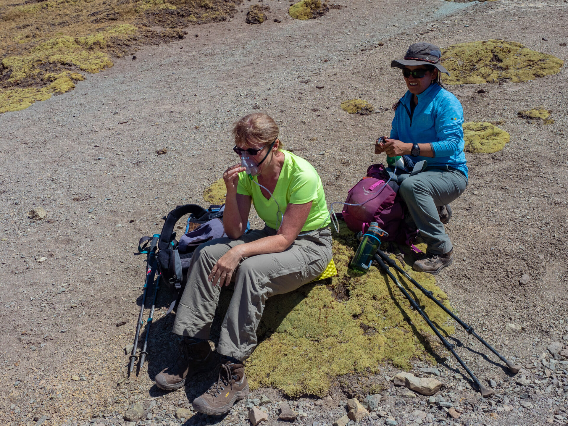Since we began our walk, Eileen has been battling a headache that seems only to worsen as we ascend. The most obvious diagnosis is altitude sickness, but she doesn’t improve with Diamox, Agua Florida (a popular local remedy), or even the administration of oxygen by our guide, which leaves us to believe this may just be a garden-variety headache. Aided by ibuprofen and buoyed by the promise of a long rest at Pucacocha Pass, she pushes onwards and upwards.