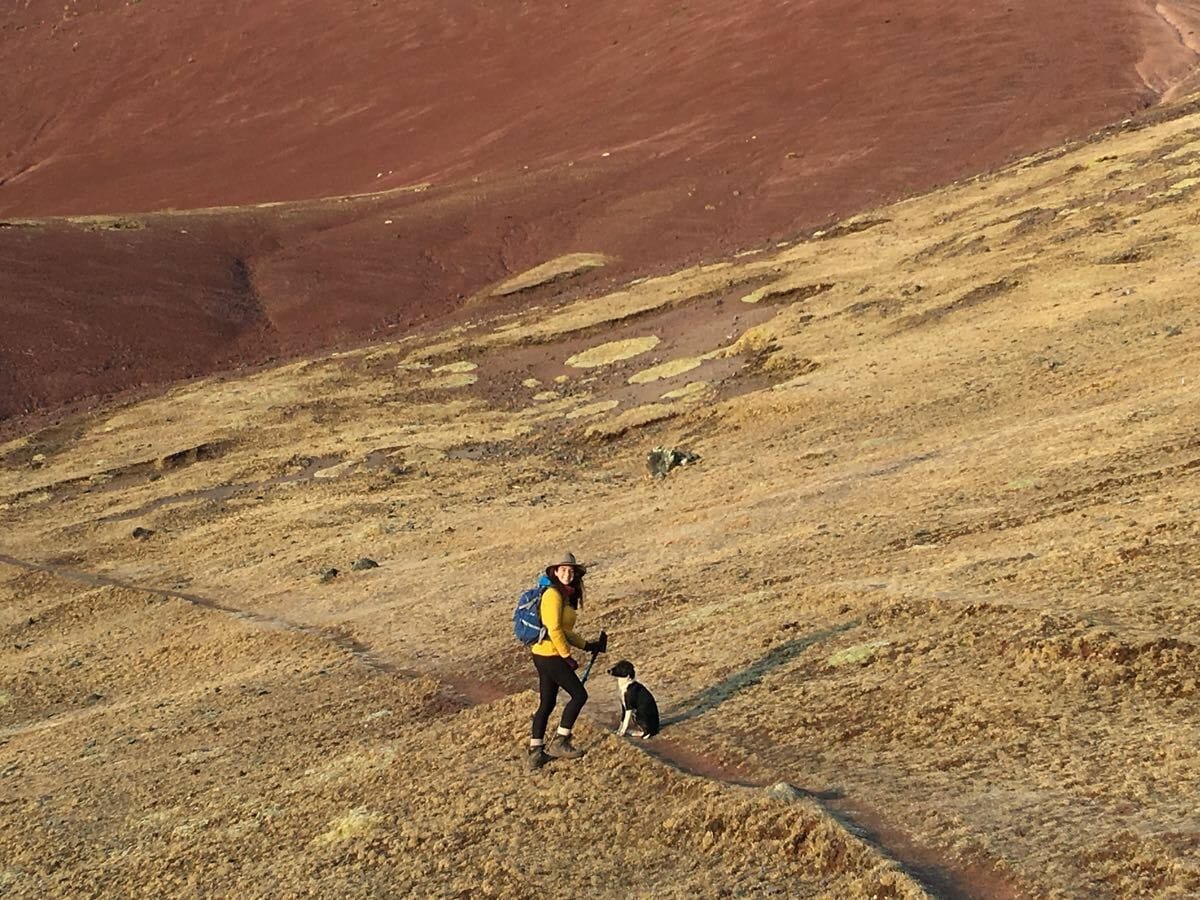 - Hiking down from Rainbow Mountain