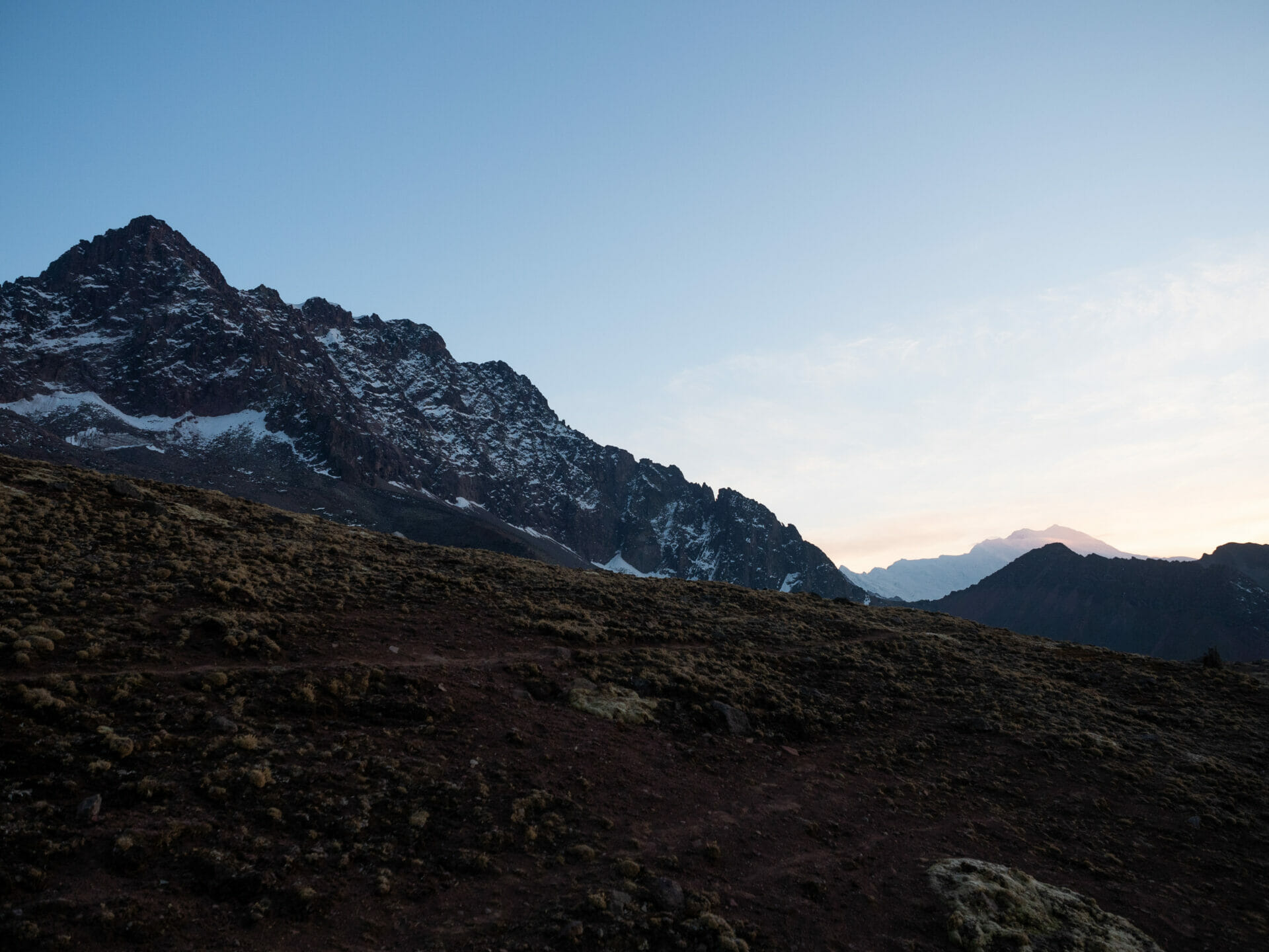 - First light just after Warmisaya Pass