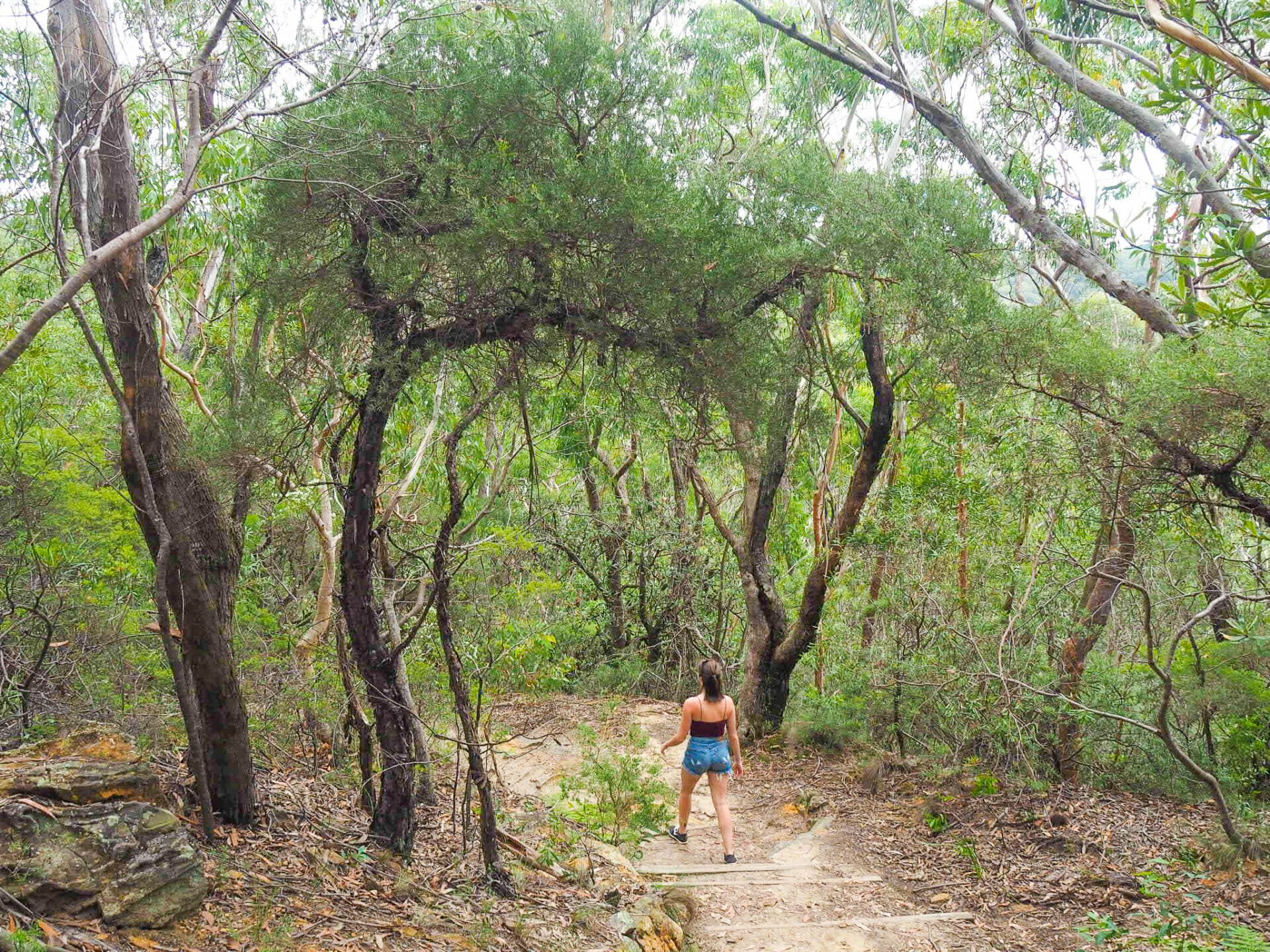 The trail begins just to the right of the Conservation Hut, a little café in the Wentworth Falls area.
