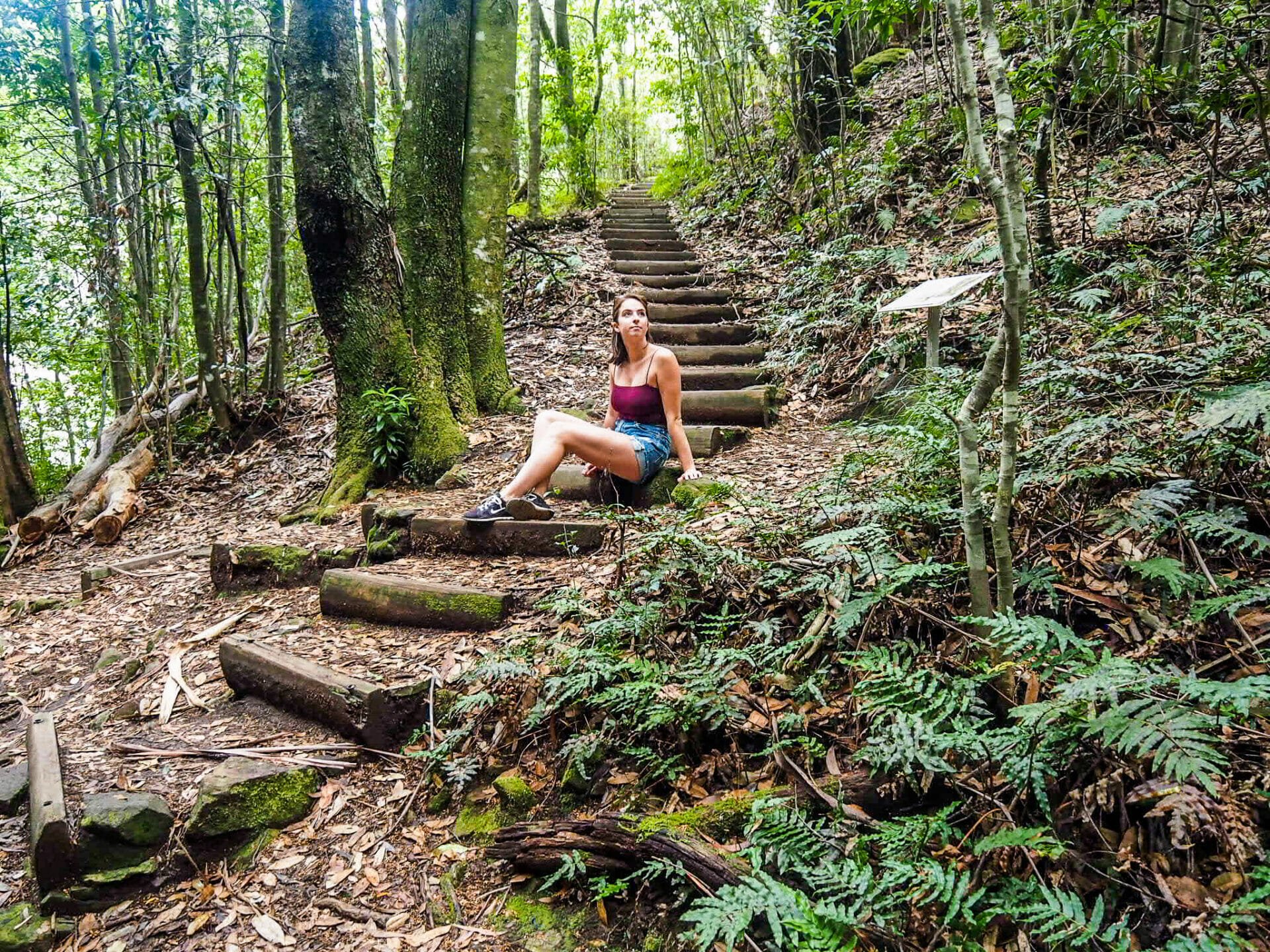 Unfortunately, the little track that continues a couple hundred metres beyond Empress Falls to reach the final view of Sylvia Falls was closed for repair when we visited, but I am assured that it is worth the continued effort. After enjoying the forest and falls views, we turned around and made our way back up all the ladders and steps, a fairly steep climb back to the car that left us puffed but ready for more adventure.