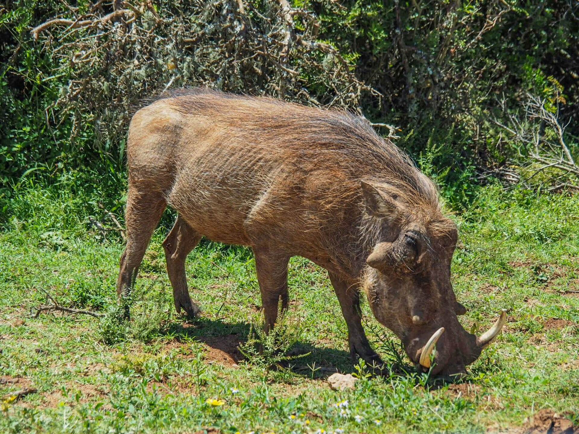 Once in the rental car, we point ourselves east and drive about 30 minutes to Addo Elephant National Park. Although we spent a few days on safari last week in Kruger, another SANPark (South African National Park), we were with a private guide, so this is our first experience self-driving and excitement levels are quite high. After paying about R270 (~$27AUD) and filling out a quick form, we drive our little car through the gate and into the National Park. Immediately, we are on the look out for animals, scanning the area underneath trees with particular fervour as it’s approaching midday and any cats would likely have taken to the shade for a catnap.
