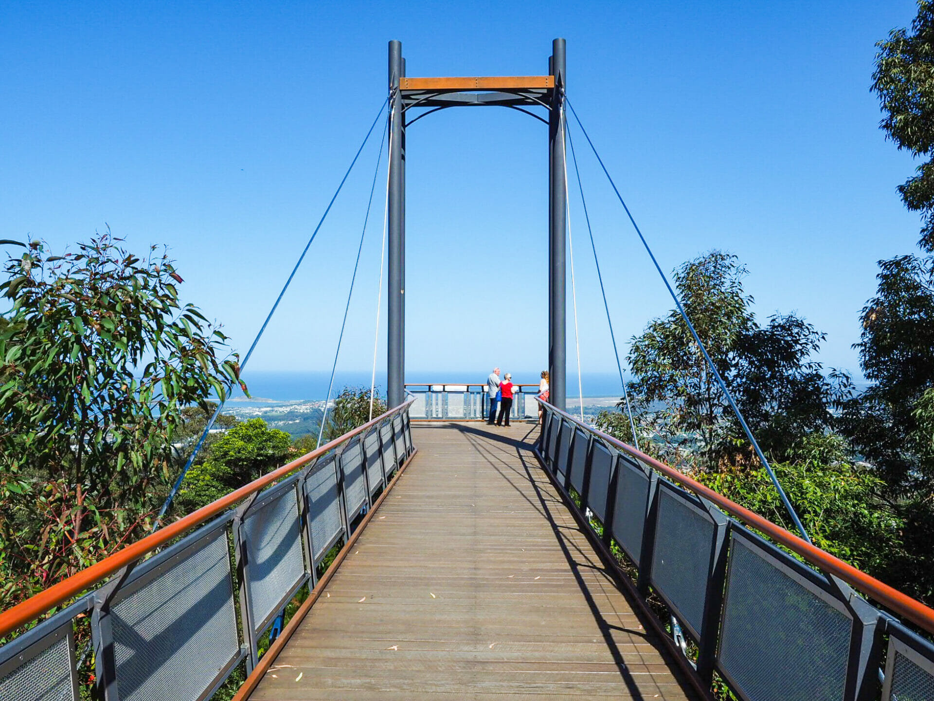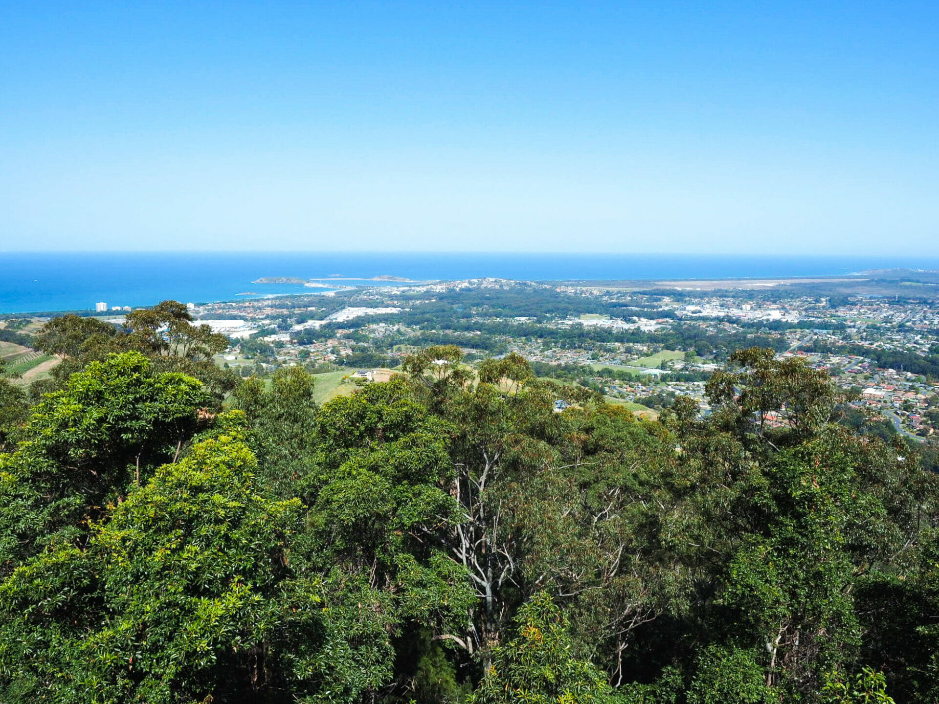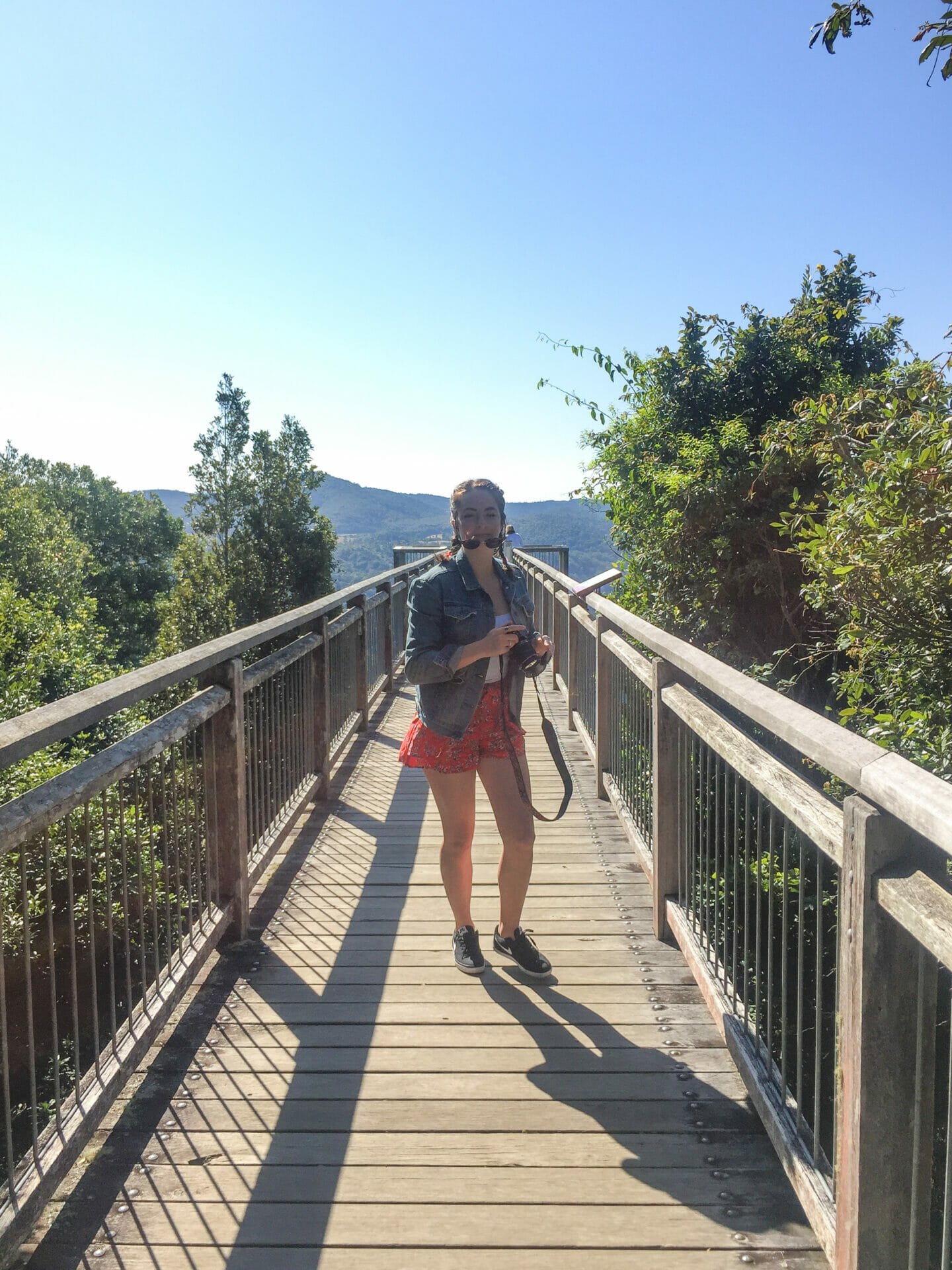After taking our obligatory banana photo, we cruise into the Guzman Y Gomez drive-thru (what can be better than a drive-thru burrito bowl?!) and onwards to Digger’s Beach, where we set up a big beach towel and enjoy our lunch surrounded by incredible palms and crashing waves. Full from my burrito (and the small bit of sand that may have blown into my sour cream), we head back to the car and drive up through the hills, passing banana plantations to reach the Forest Sky Pier. Like the Sky Walk we visited earlier this morning, a boardwalk extends over the hill and offers stunning views of the landscape below, but unlike the Sky Walk, we are treated to sweeping coastal views over Coffs Harbour and the ocean.