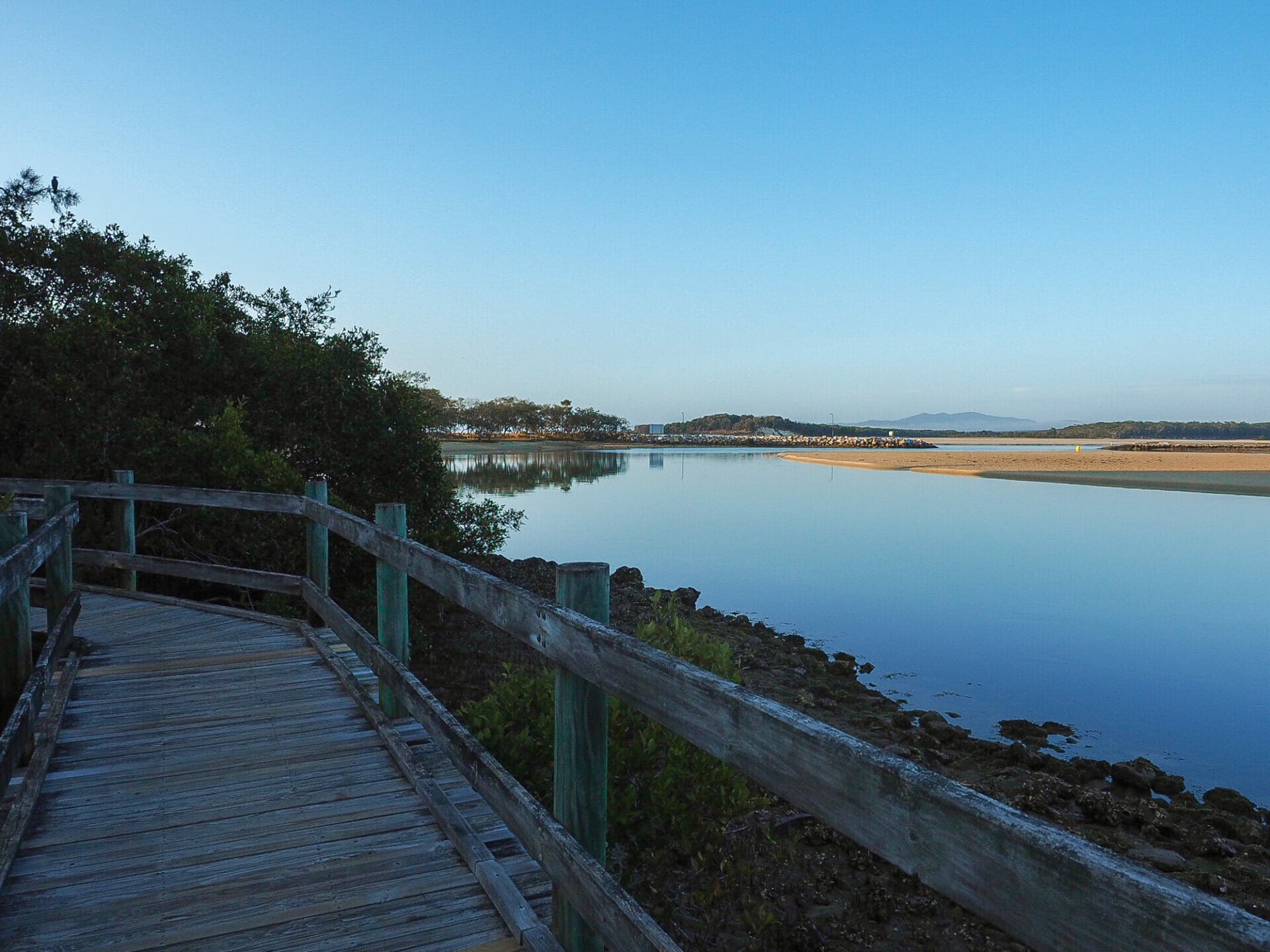 Diana and I set out from our cute little riverfront hotel with a slow walk that gradually transforms into an enthusiastic power walk as we notice the sun beginning to peak over the horizon. Although Nambucca can be crowded during summer holidays, it feels as if we have the place entirely to ourselves (plus or minus a few grey nomads out for their morning stroll) and the serenity is staggering.
