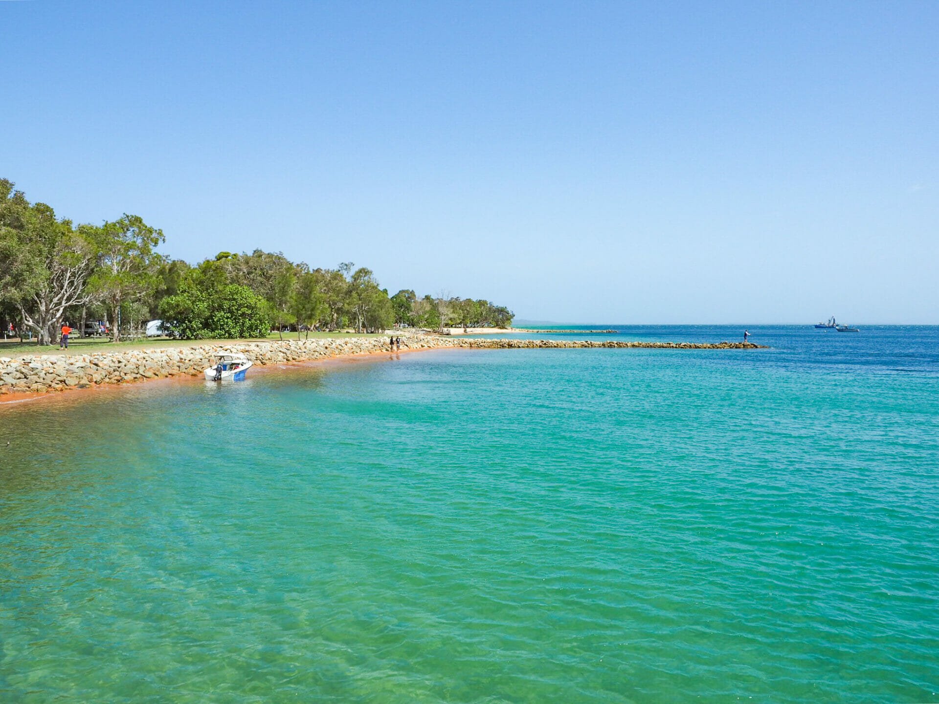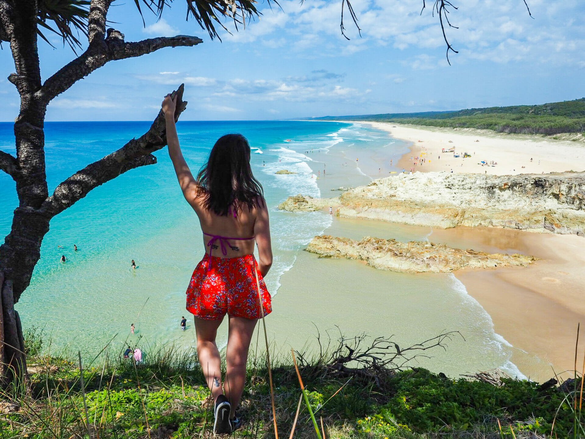 If our arrival in Dunwich was somewhat ordinary, what we find in Point Lookout is like something out of a postcard: the sun is shining over crystal clear water in a million shades of blue, white sand beaches extend into the distance, dramatic rocks frame the landscape, and still there are hardly any people around. Diana likens it to the Mediterranean (if the Mediterranean was Europe’s best kept secret), but fortunately we have it nearly all to ourselves in Australia.