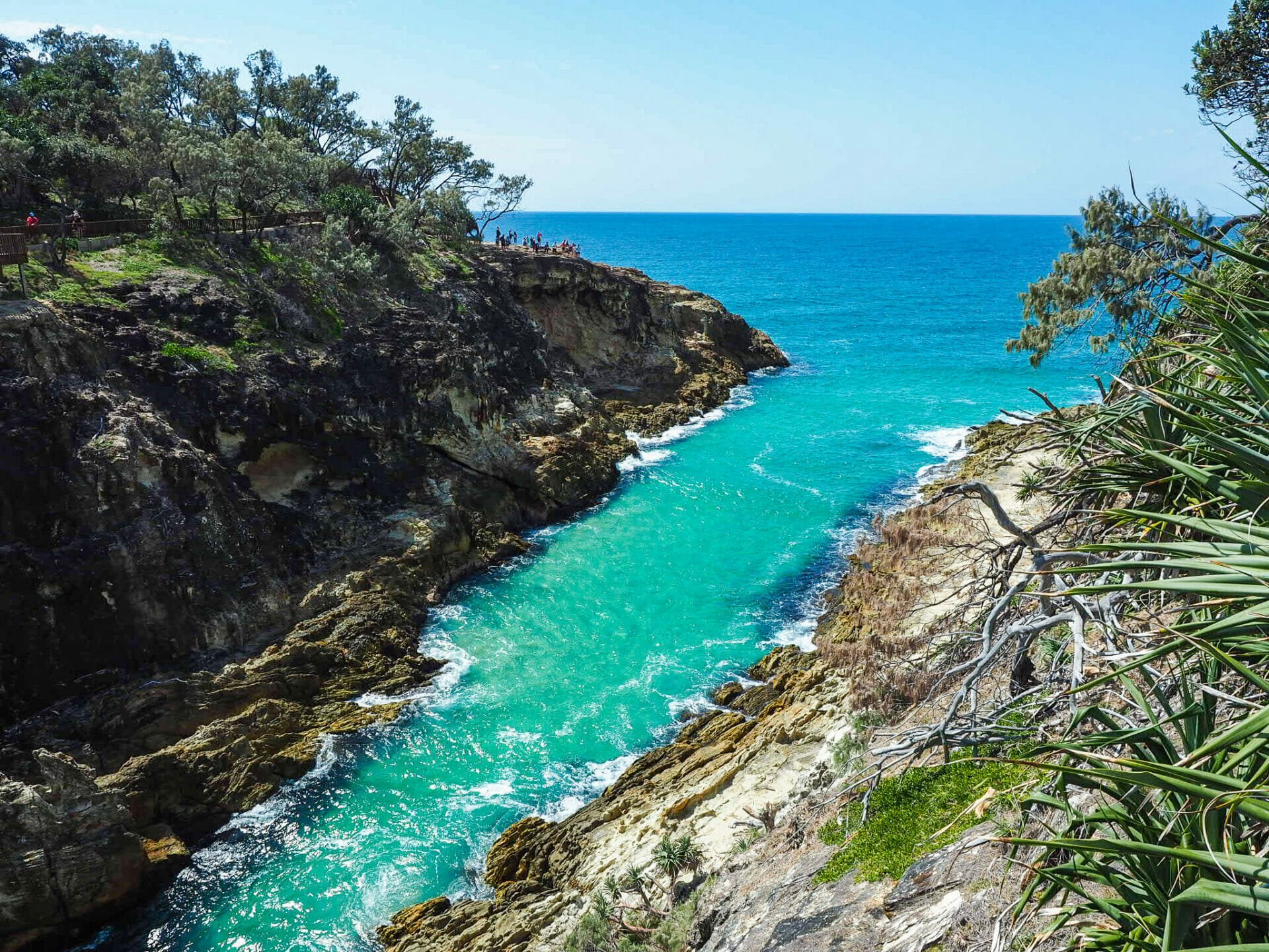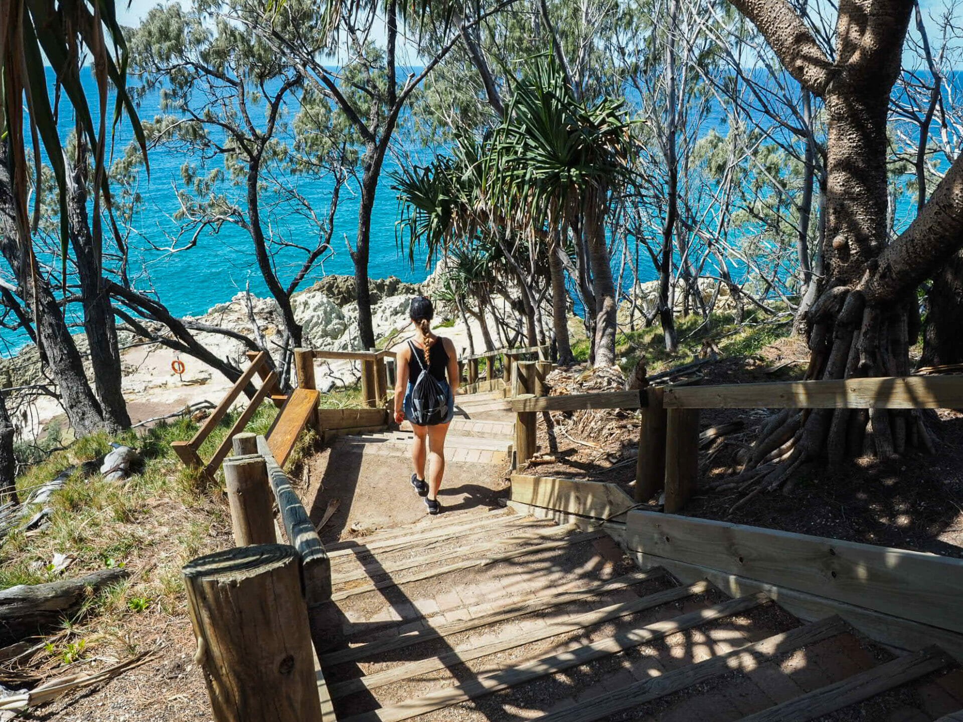 One of the best-loved activities on Straddie is the 1.5km Gorge Walk that runs along the coastline from Point Lookout, so naturally I’ve decided to make it our number one priority and official first stop on the island. The public bus drops us off right near the start of the loop-like trail (it finishes near the starting point, but isn’t really a true loop), and after plenty of gasping and manic giggling at Main Beach, we are strolling along the boardwalk, surrounded by even more stunning scenery.