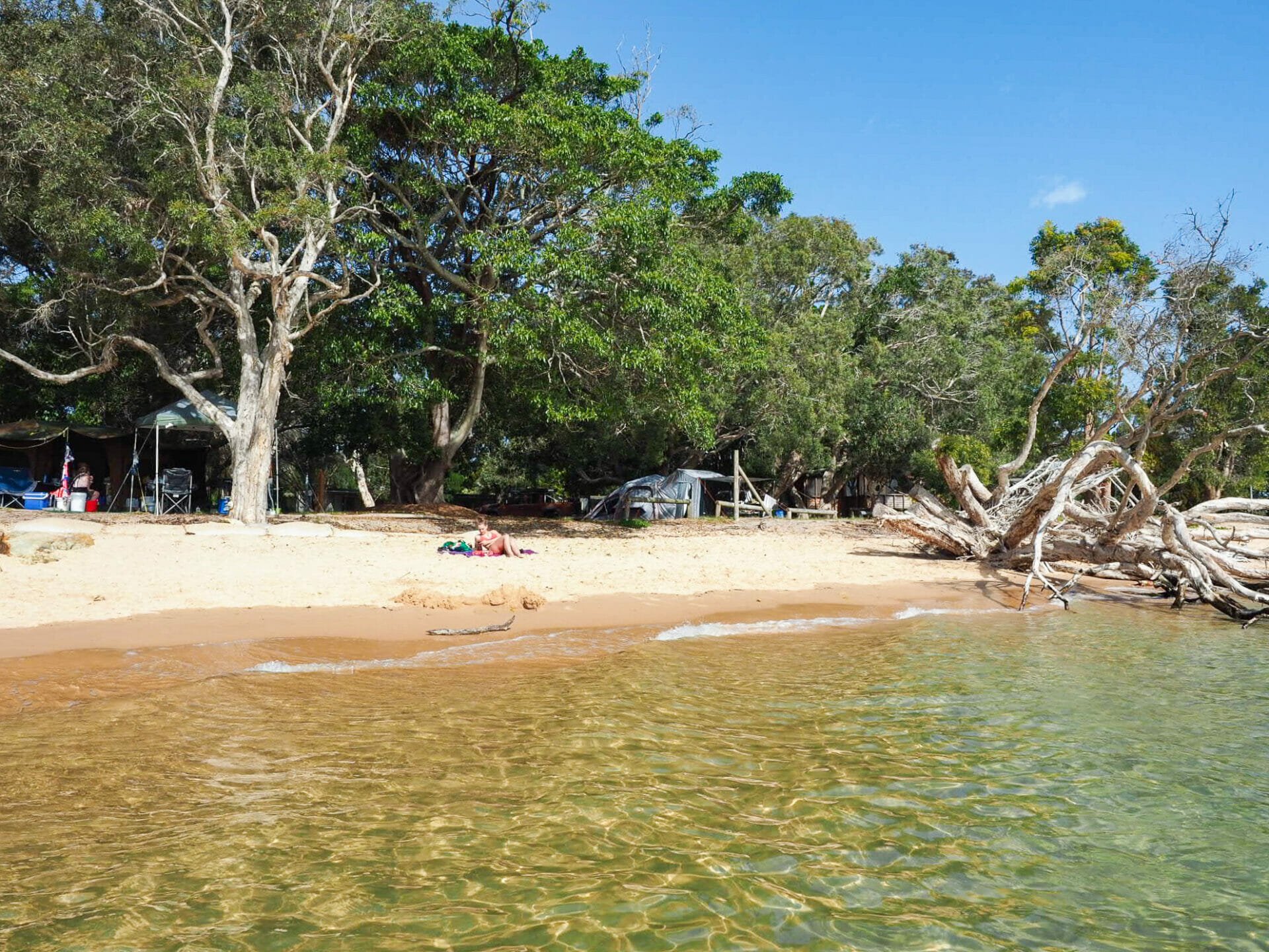 Having ticked dolphins off our growing list of wild animals to spot, we wander towards Minjerribah Campsite in search of koalas that are apparently rather common in the gums here. Both with far better eyesight and much greater patience, Diana leads our search for the koalas, but eventually we decide to take a break and enjoy the swim we’ve been longing for all day (it’s impossible to stare at such brilliantly blue water and not get in). My one regret is that we don’t get to camp in the unbelievable beachfront sites, but I promise myself that I’ll be back!