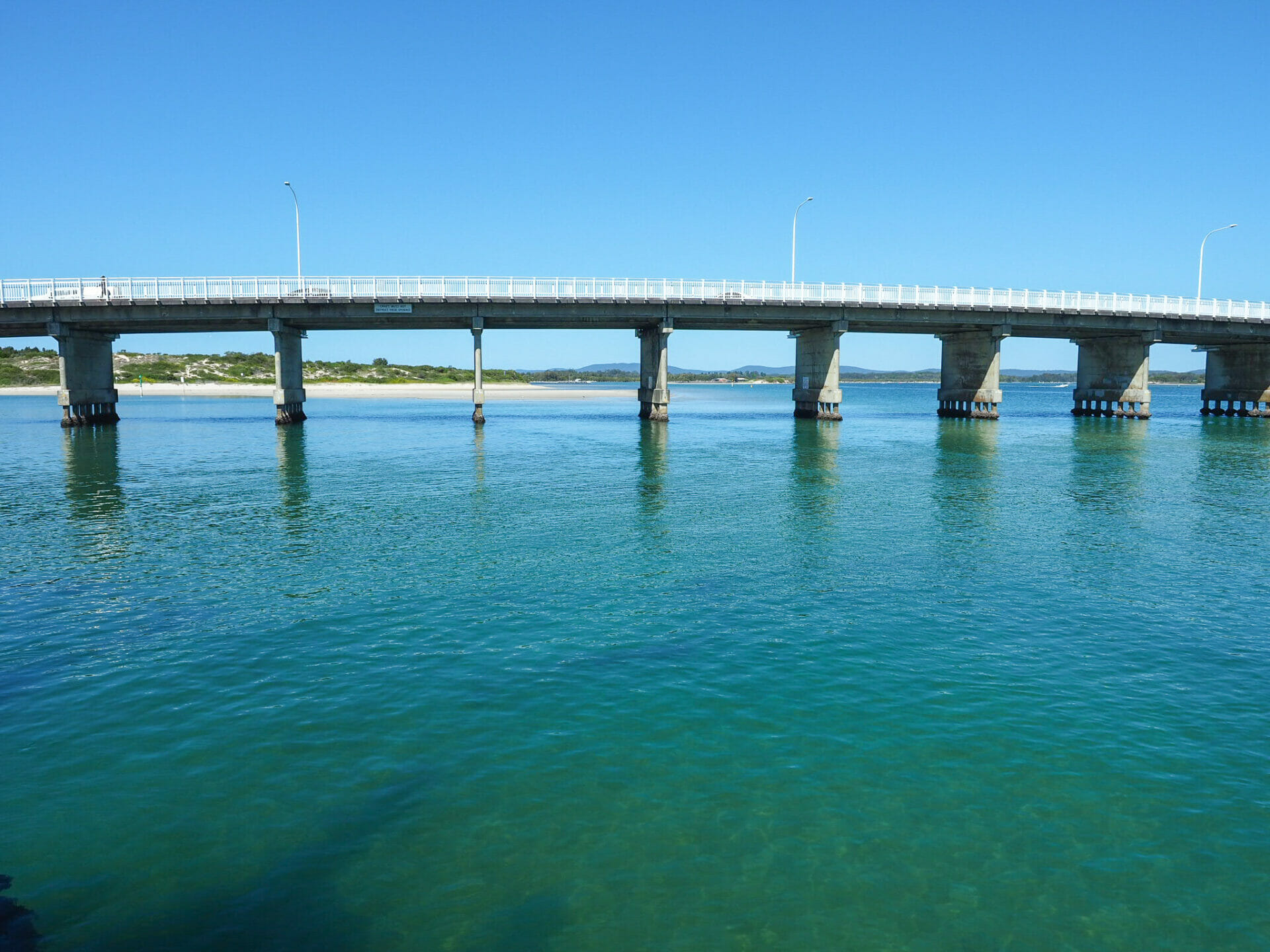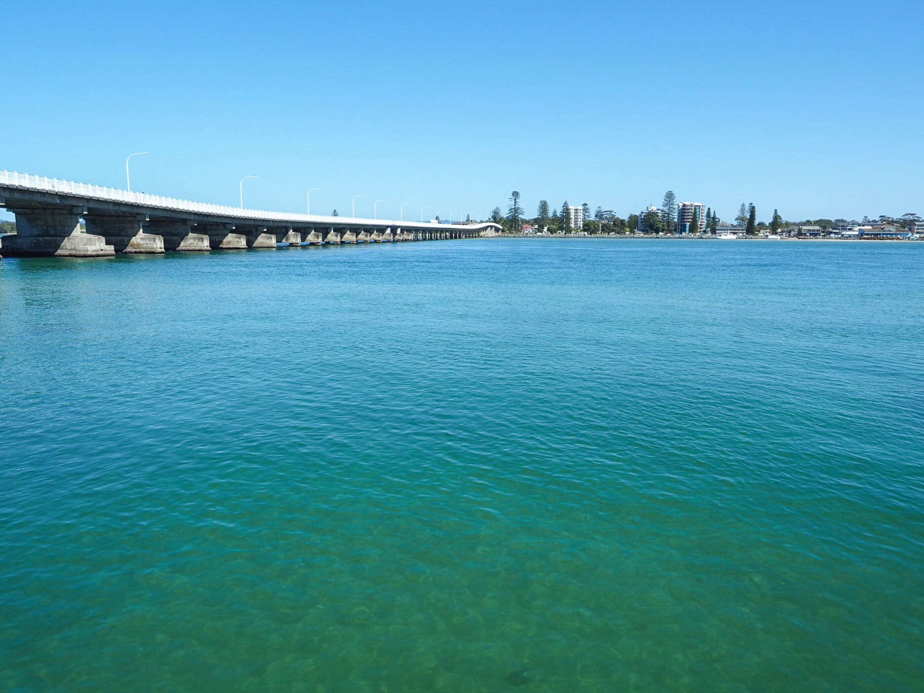 Before long, Diana returns with her coffee and we set out on the 90min drive to Forster, the only major stop we have planned for the day. Neither of us know much about this town, but a number of people over the years have lauded it as a picture-perfect lakefront destination and Diana seems to have gotten a similar recommendation, so we’ve thrown it into the itinerary in the hopes that we will stumble across some surprise gems. Our initial approach is certainly promising, as we drive over the impossibly clear and beautifully blue Coolongolook River, quickly parking and hopping out to take in the views up close.