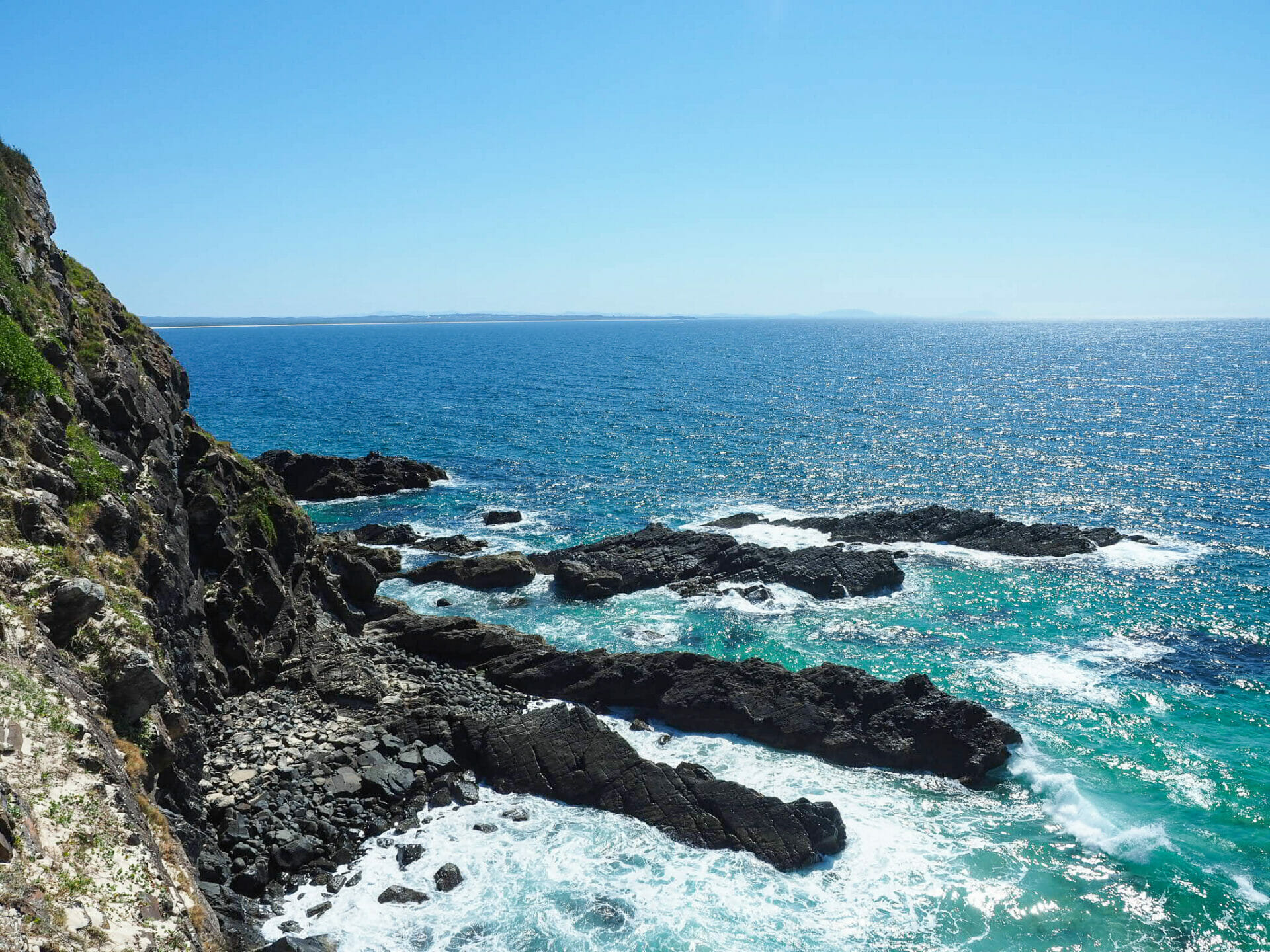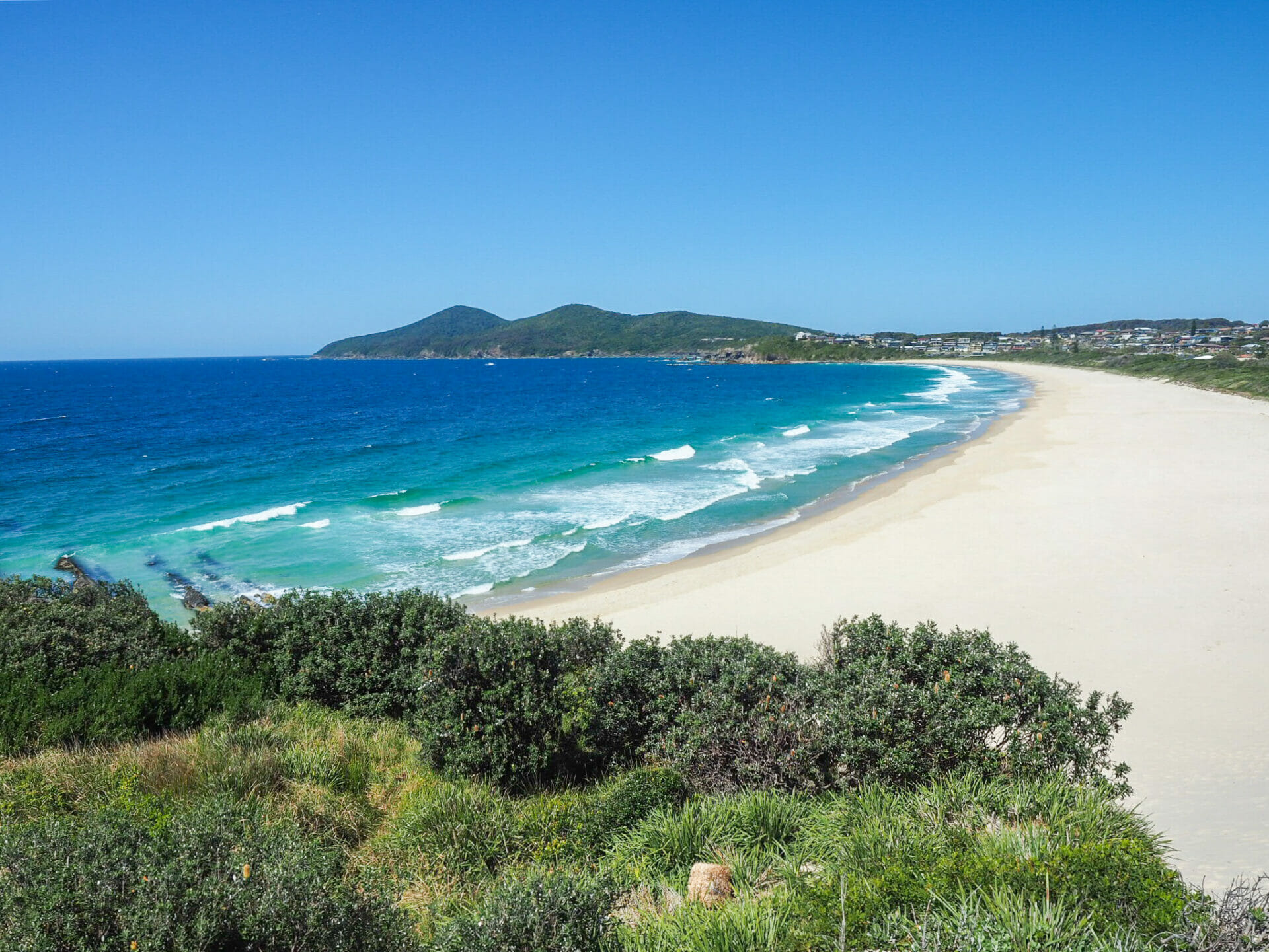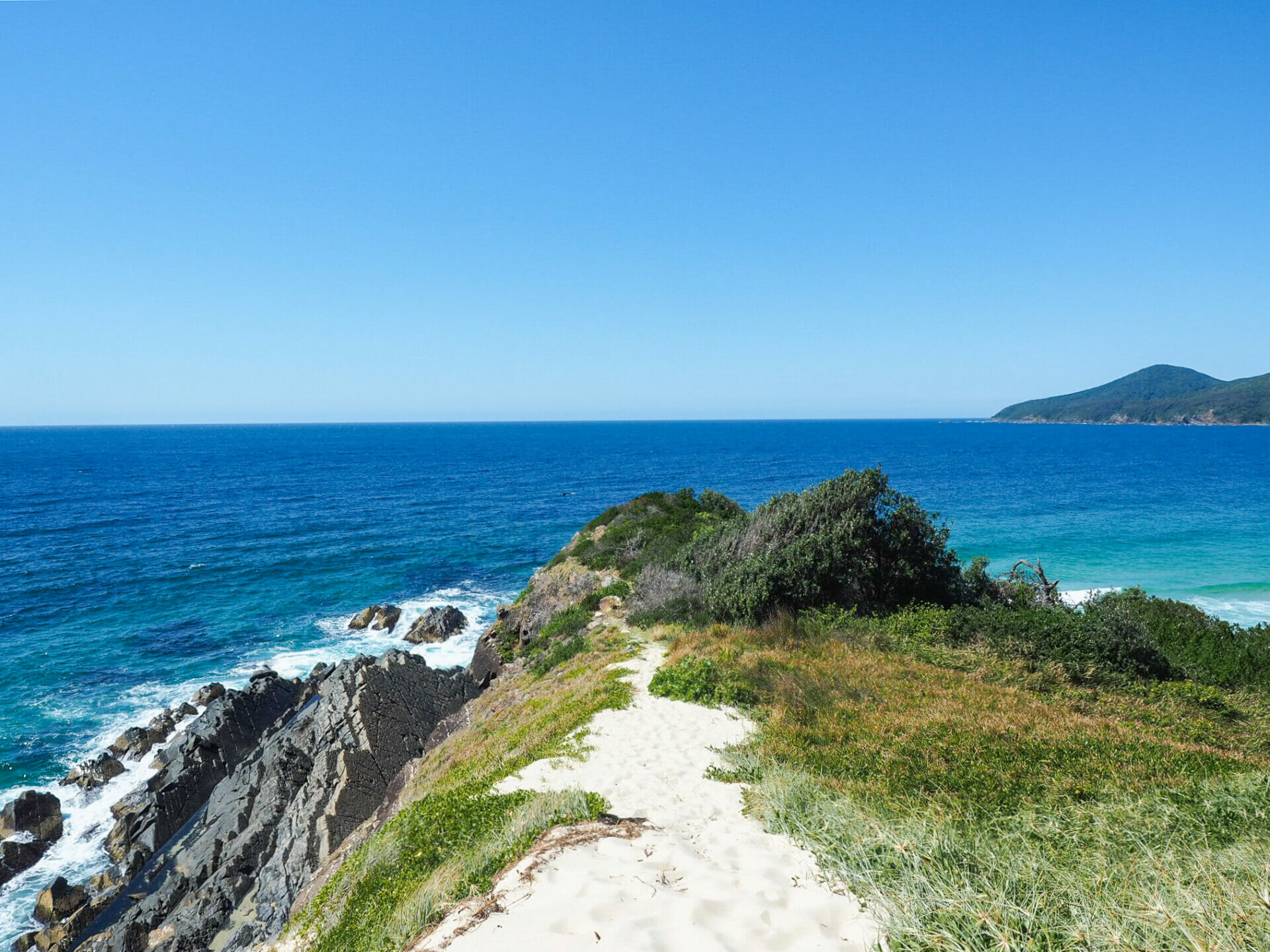 From the centre of Forster, Diana navigates us to a lookout she read about online— it’s hard to go wrong with a viewpoint, so we both figure it’s a pretty good place to start. Still, we are blown away by the rugged coastal beauty, so different than I had anticipated given the calm river we just strolled along below. There are about half a dozen locals at Bennetts Head, all with binoculars pressed against their faces on the lookout for humpbacks travelling south on their way back to Antarctica, and it doesn’t take long before they are hollering and (attempting to) point out the whales for us. As much as we both love seeing whales, though, it’s hard to get excited about an indistinct splash in the distance when we don’t have any binoculars ourselves, so we soon move on to the other smaller lookouts along the coast, enjoying the scenery and the wild headland instead.