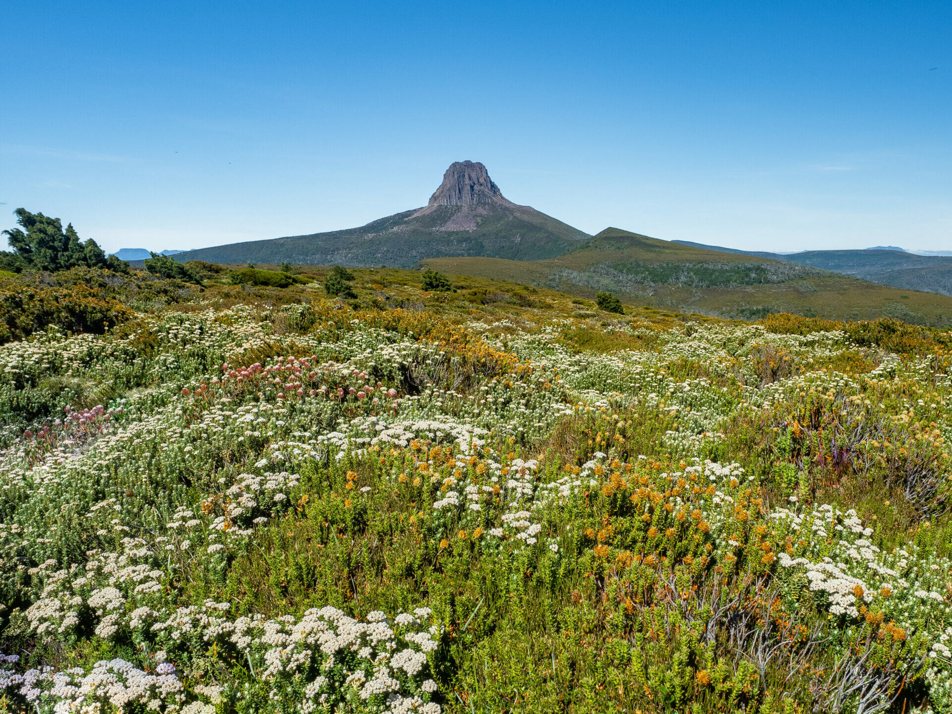 - Barn Bluff and a sea of flowers