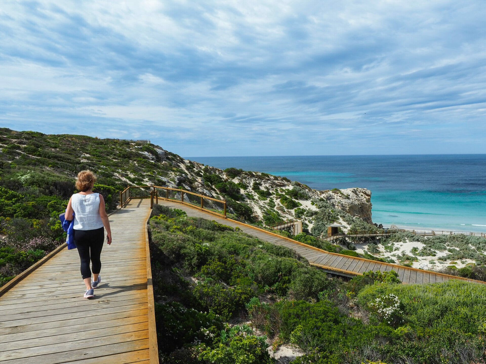- Mum strolling along the Seal Bay boardwalks