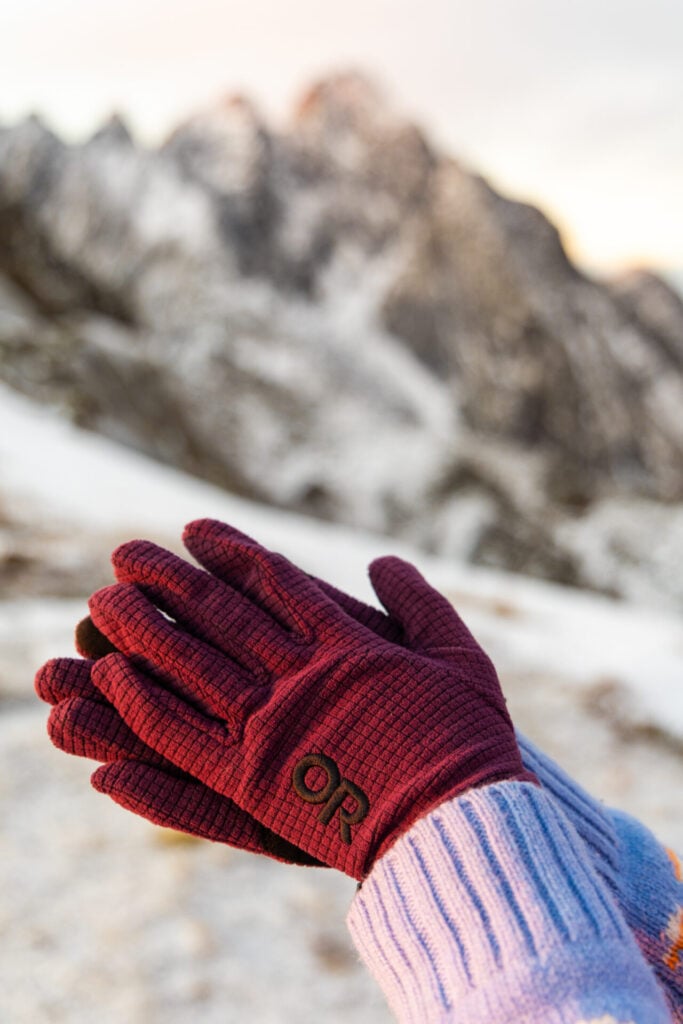 - 2–3x gloves or mittens might seem like overkill, but your hands are often the first thing to get painfully cold— we carried lightweight hiking gloves, leather alpine gloves, and down mittens on every single hike and regularly swapped between them throughout the day