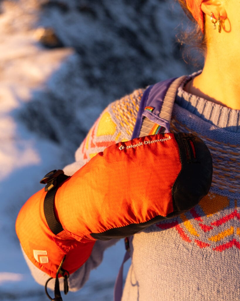 I normally use these for alpine climbing, where rope handling and ice axe control are critical, but James actually prefers them over mittens for general winter hiking. At an absolute minimum, bring one seriously warm option (either insulated gloves OR mittens), but I personally carried both to dial in comfort across changing conditions.