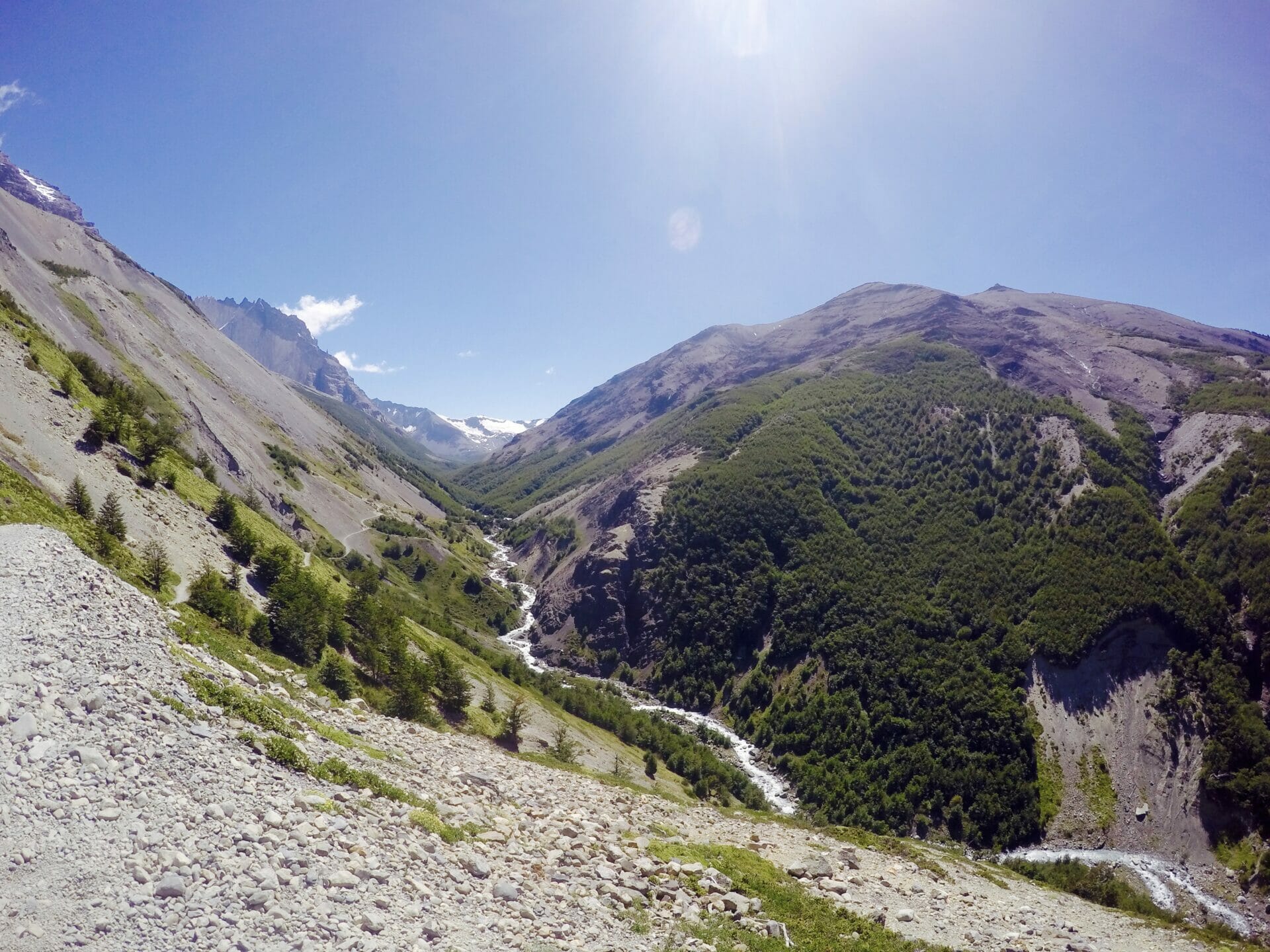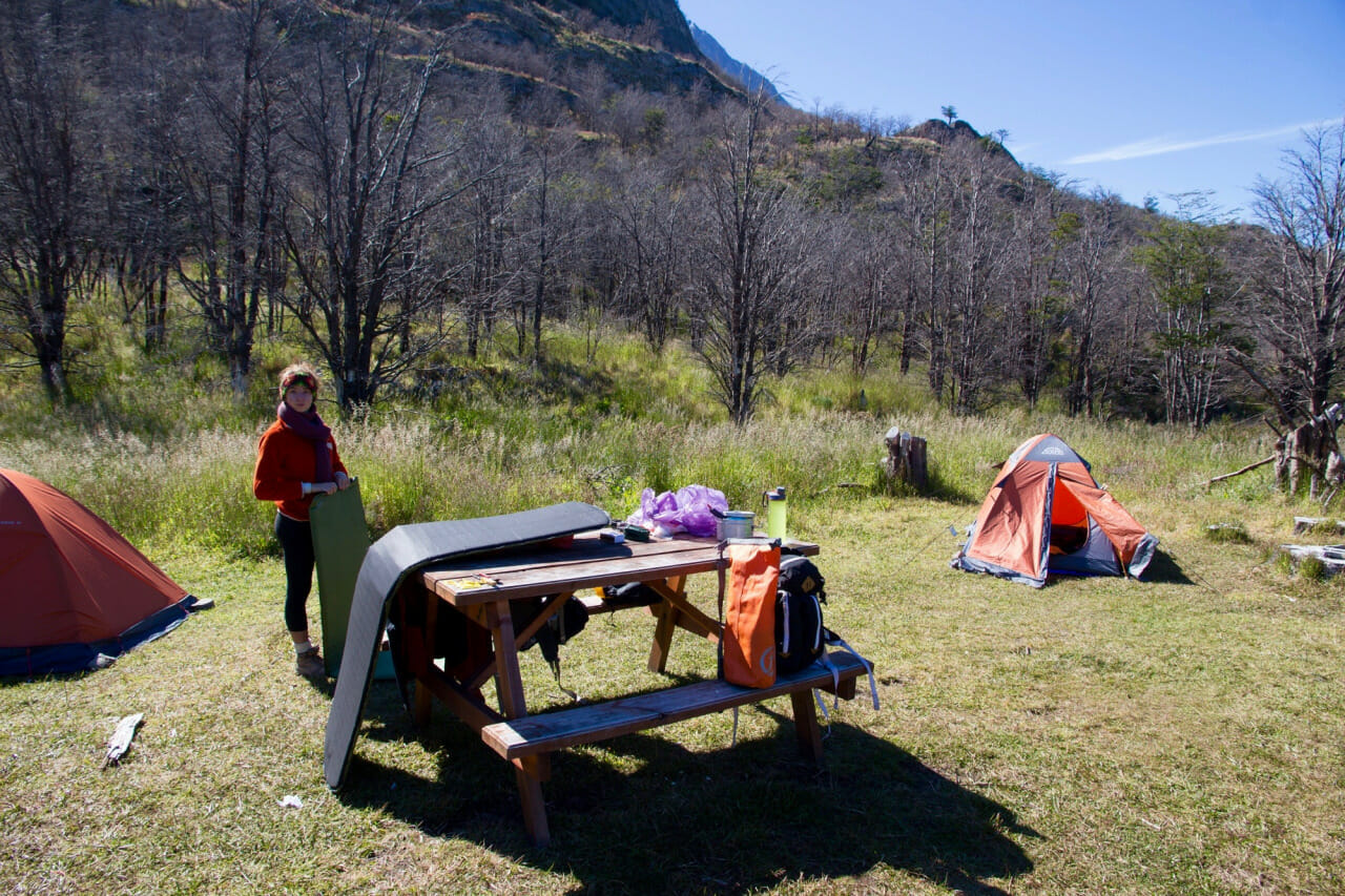We do not make another afternoon-start mistake today; we’ve eaten, packed our tent and backpacks, and are on the trail by mid-morning. The hike is studded with incredible views of snowy-mountain peaks above the glacier-fed river– probably one of the best parts of the park is the frequency of rivers and streams, all ice-cold and delicious to drink. It’s not long before we reach Camp Italiano and head 5km upwards to a series of miradors looking out over the Valle del Frances, the last of which is Mirador Britanico. The panoramic views of the mountains are unbelievable and I’m not sure either of our cameras do it justice.
