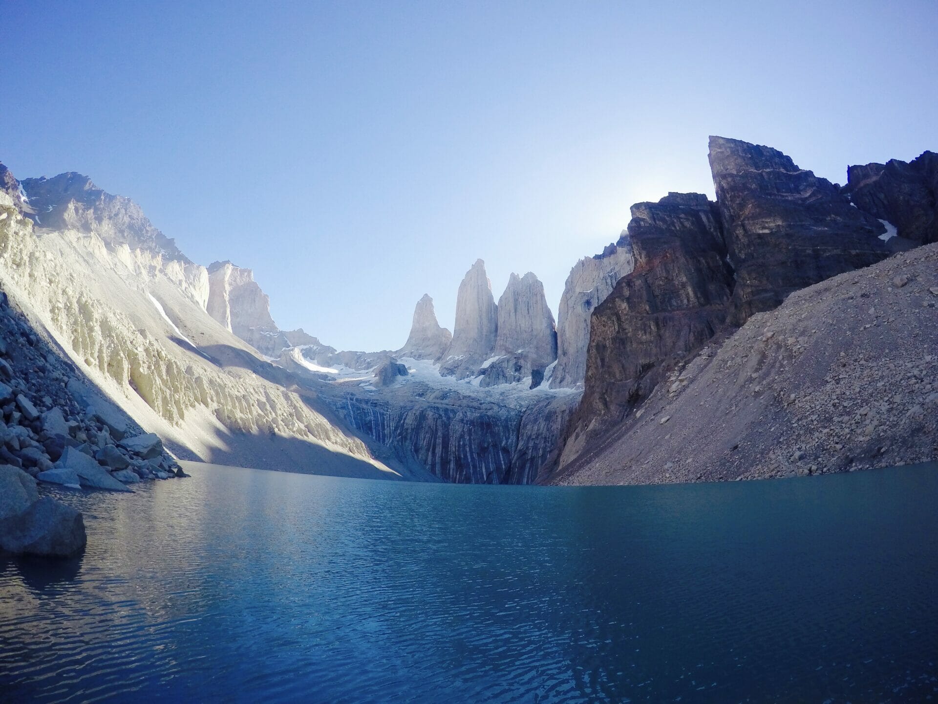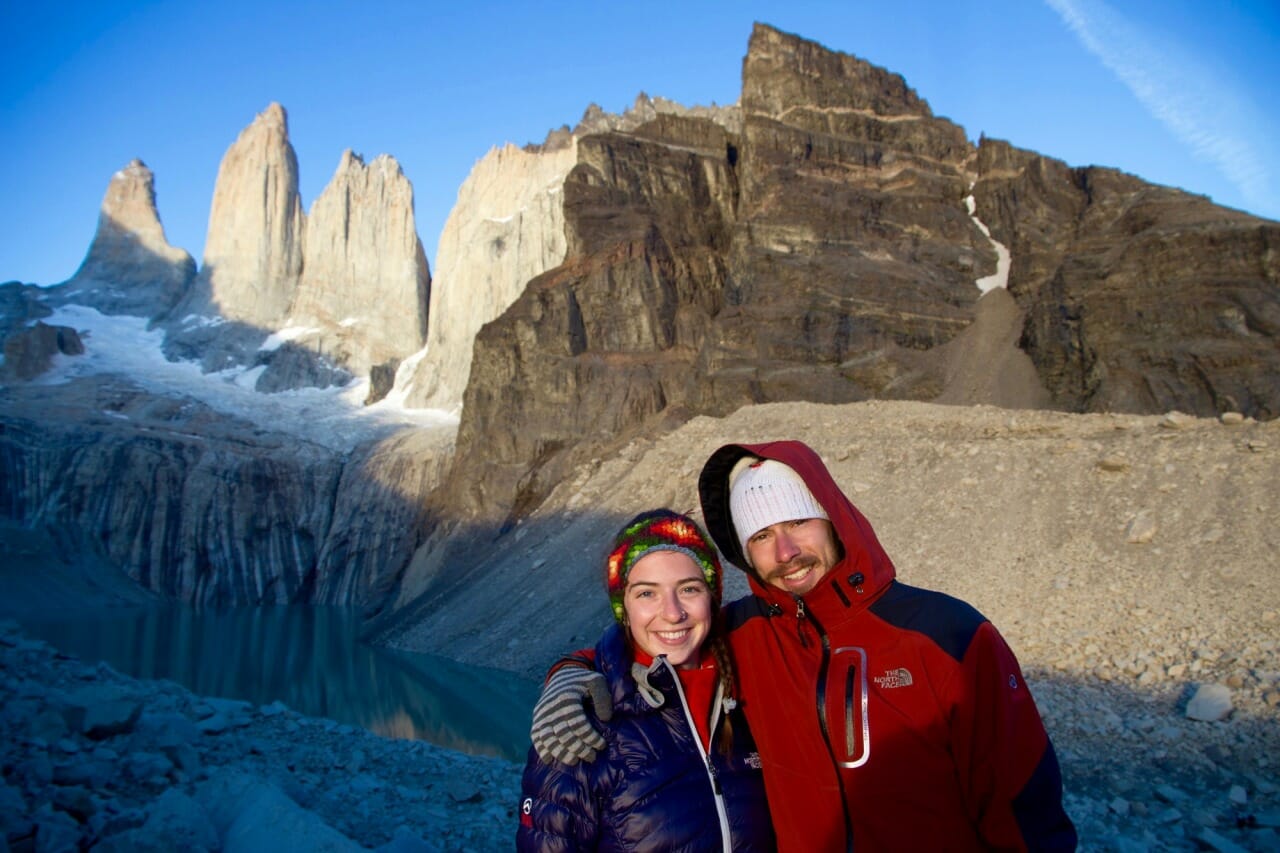 The fast pace of the day requires us to have a brief rest before we can move again, so we cook an early dinner and leave for the hike to the final mirador. The first half hour is incredibly steep trails, followed by a half hour of boulder-scrambling across loose rocks to reach the base of the three peaks that give the park its name. We share chocolate cookies and oranges on a rock by the lake in front of the mountains, taking in the views all around us and trying not to drop things into the Laguna. The view is indescribable. Tired legs scramble back down and fall into bed early in anticipation of the 4am wake-up tomorrow, repeating the same uphill trek in time for sunrise.