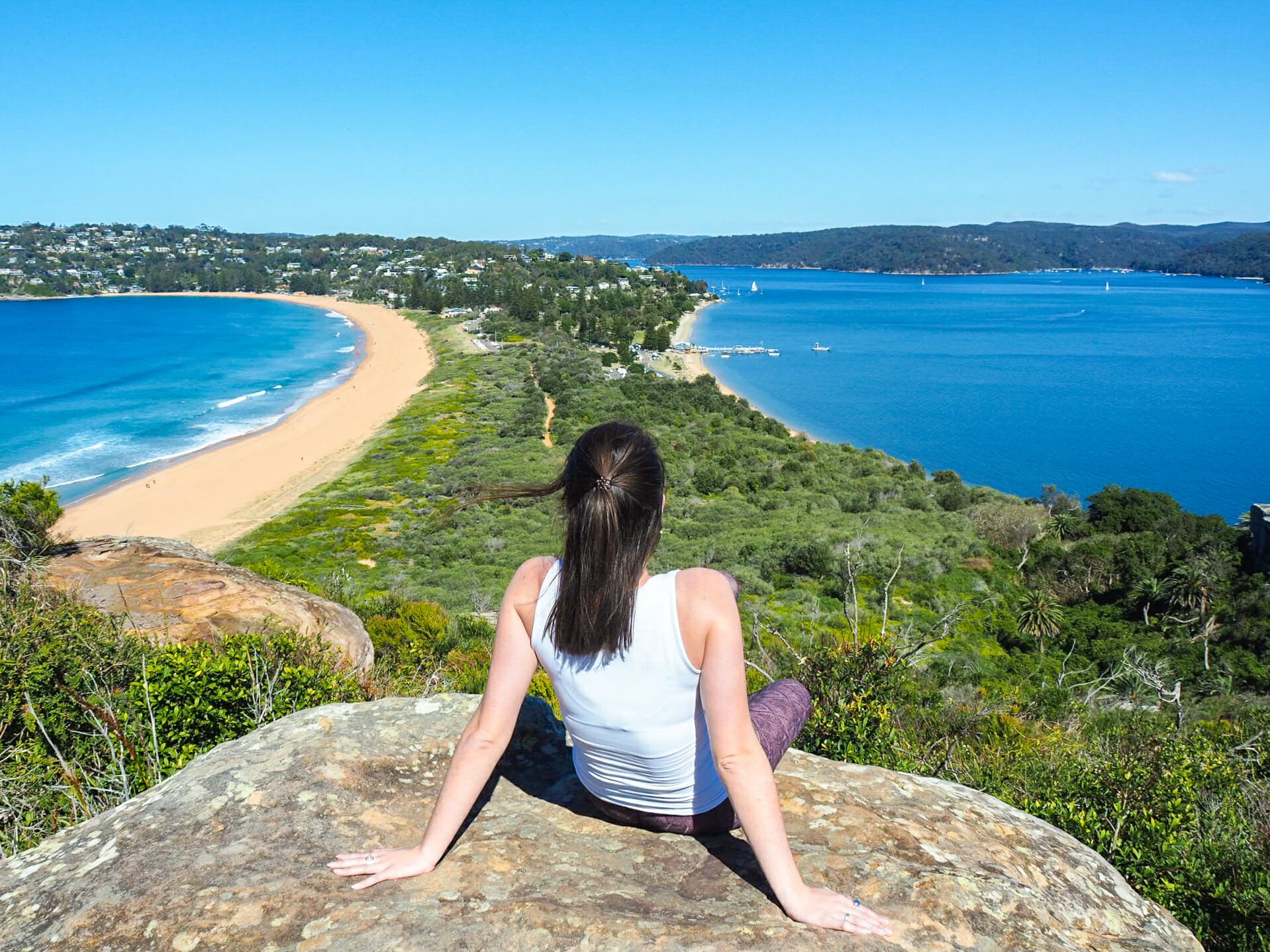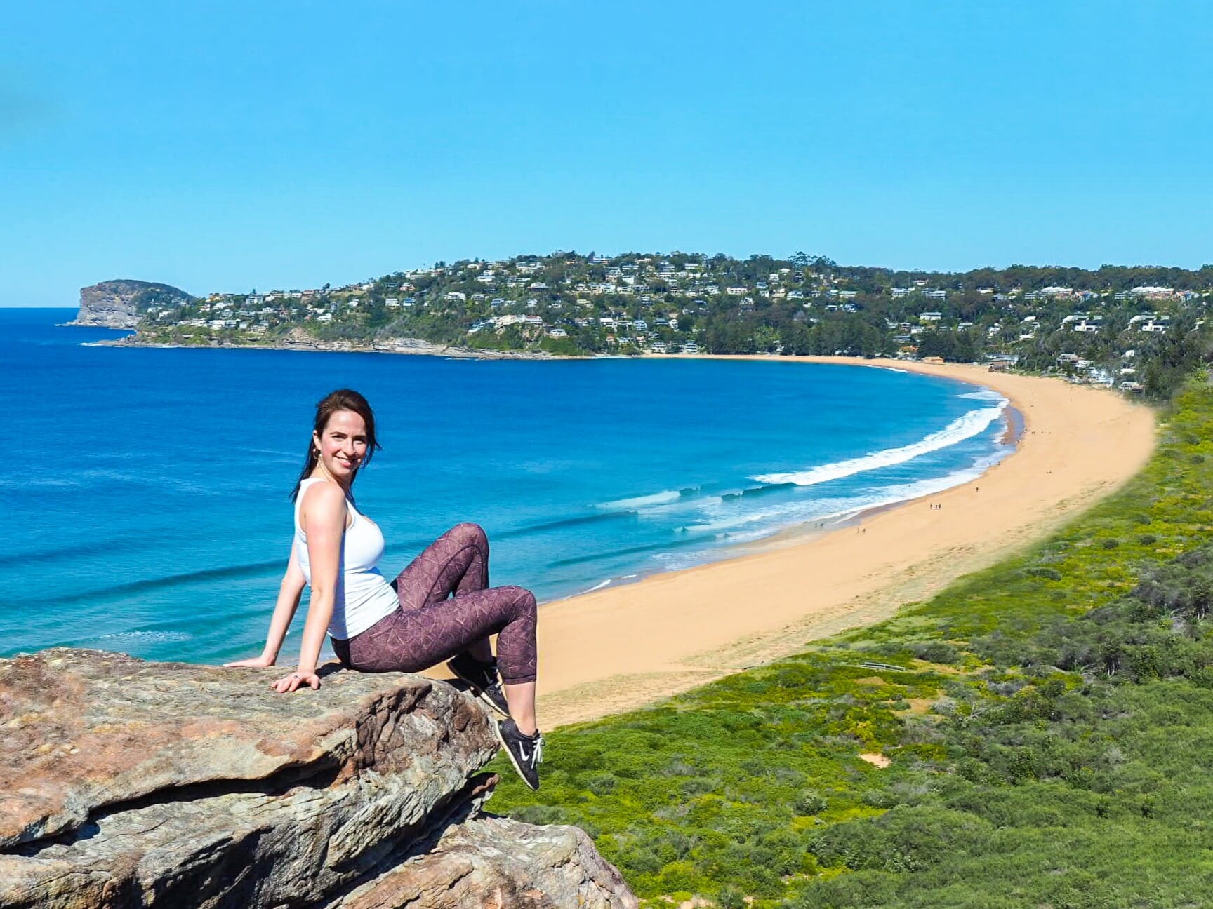 In summer, the top of the walk is likely to get pretty busy, so capitalise on the many rocky outcrops and stone ledges just before the lighthouse to snap some uncrowded photos over beautiful Palm Beach. And even if it’s not crowded, I always love a good rock perch! Once at the top, you’ll also enjoy panoramic views over Sydney’s Northern Beaches, with ocean and distant headlands in every direction. It will immediately become apparent why this short walk is so popular.