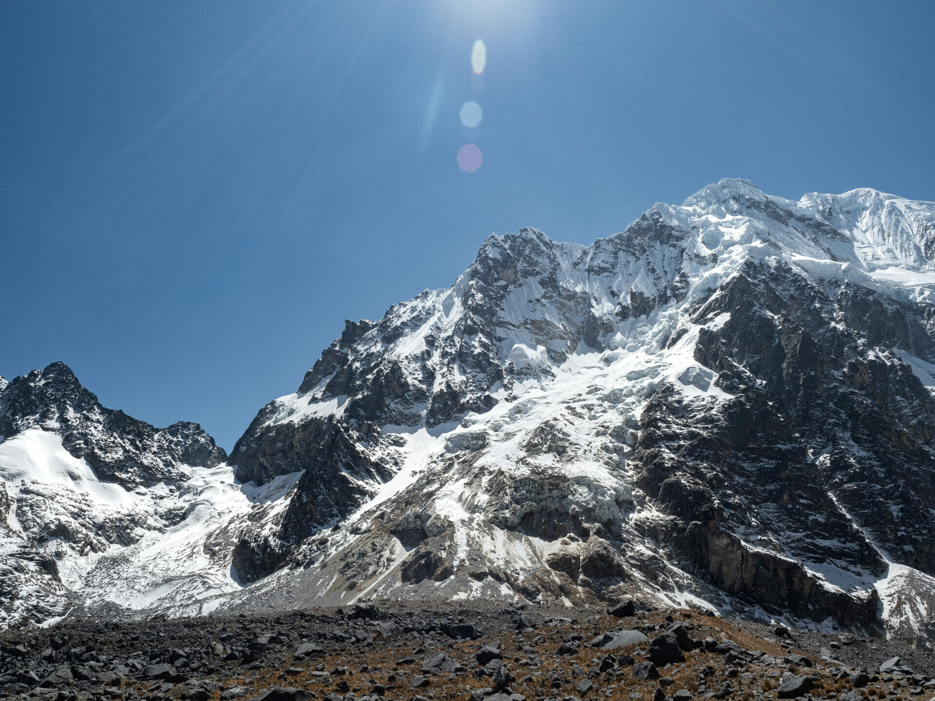 - Early morning sun hitting Salkantay