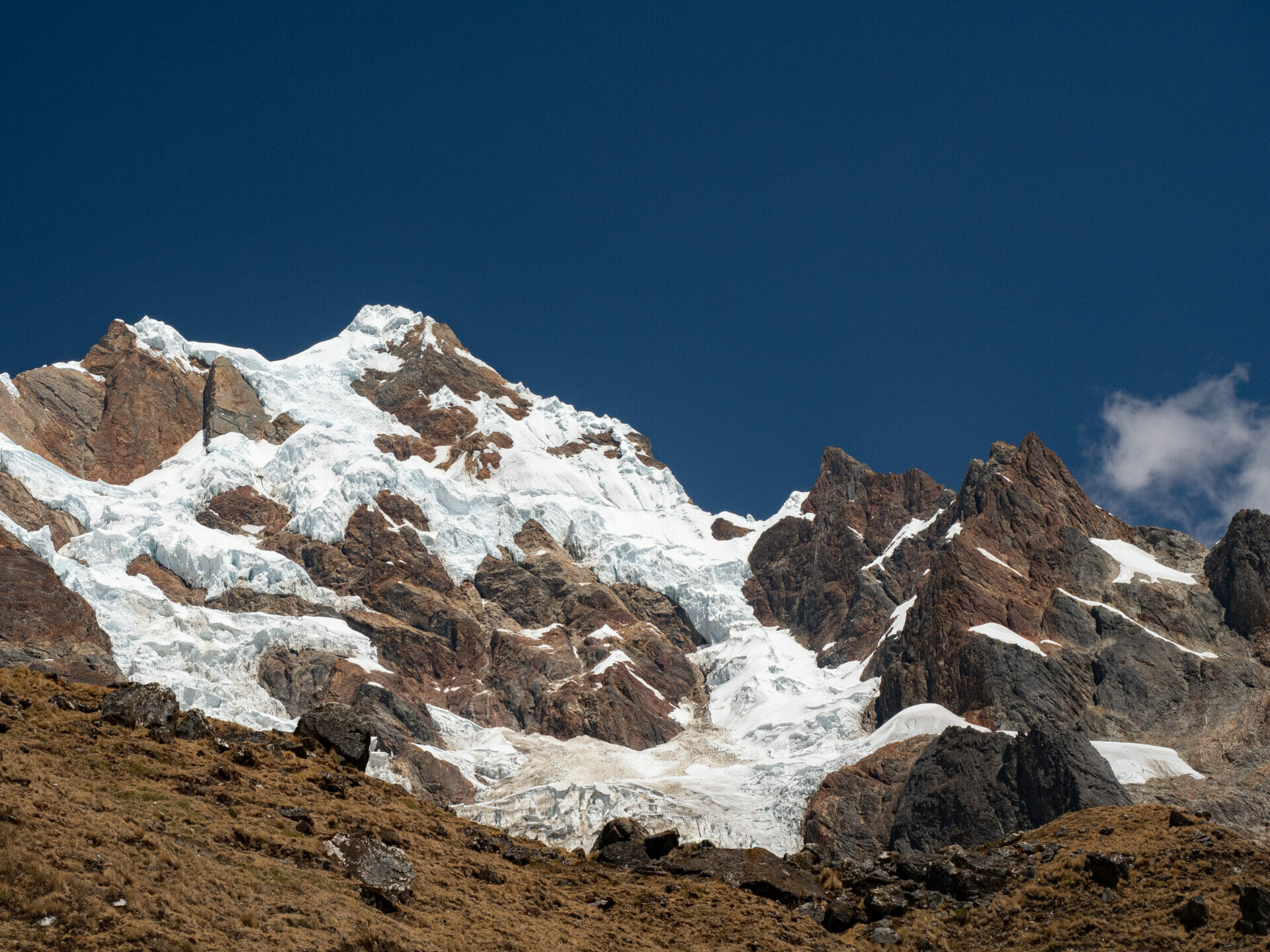 Even so, we make fantastic time to the top of the pass, where we are all promptly blown away by the proximity of the hulking Salkantay glacier. I’m not actually sure I’ve ever been so close to a mountain this size, because it feels like we are ON the face.