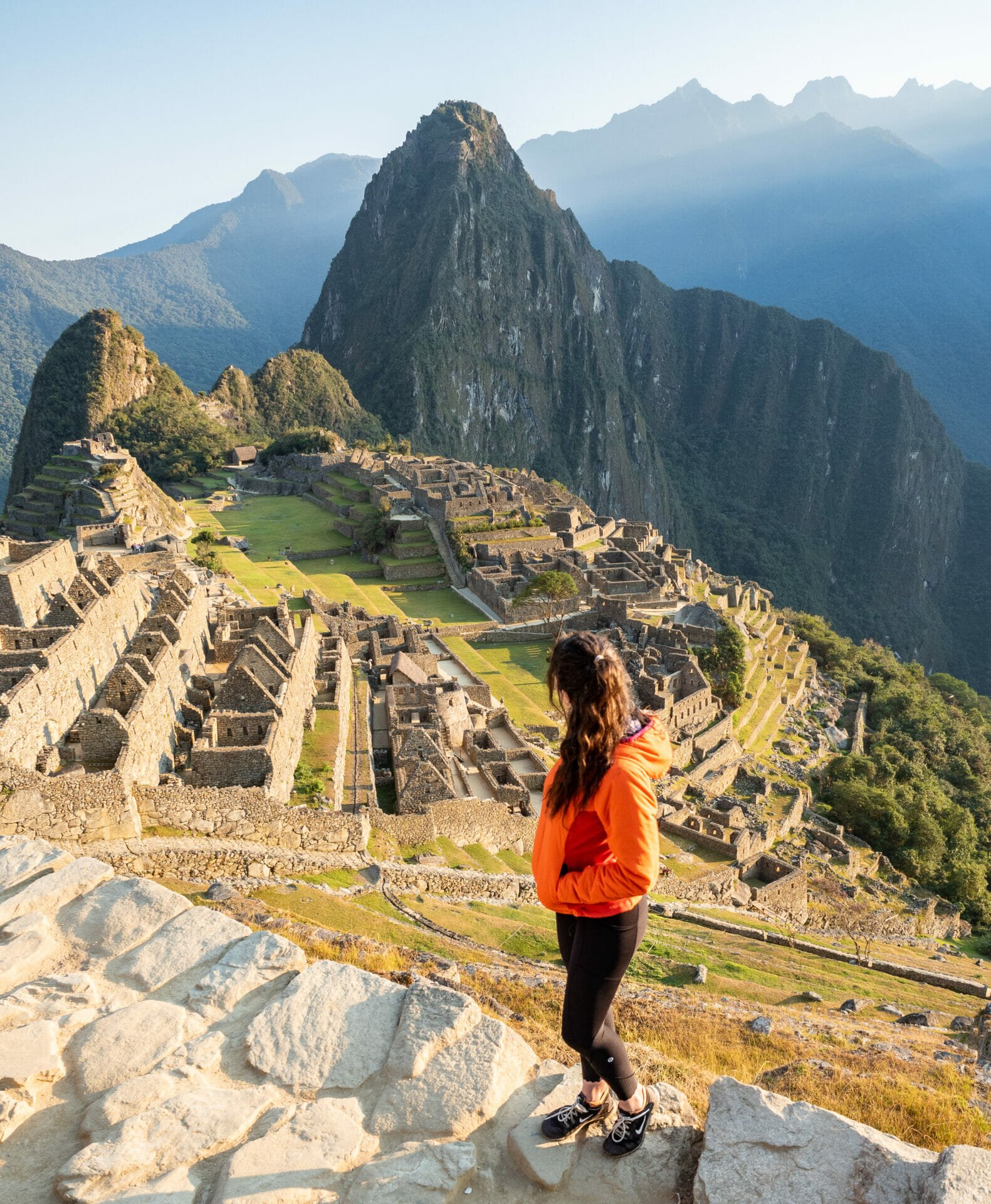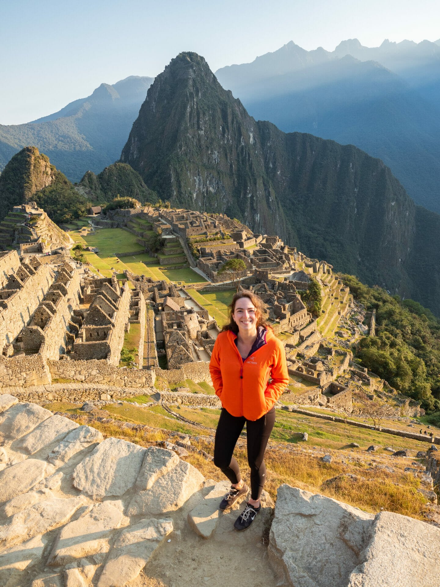 It’s pretty light by now, but the sun still hasn’t crested over the mountains yet— this is truly the most magical time to be at Machu Picchu, just in time to catch the first light. Last time I was here, we were peering through a thick layer of fog trying to catch a glimpse of Huayna Picchu and the beautiful ruins below, but this time the sky is entirely clear and picture-perfect sunbeams are starting to appear, bathing the green mountains in a golden light. Everyone is far too distracted by the view to listen to Nico’s prolonged history lesson, so we run around trying to capture the ever-improving beauty of this World Wonder instead.