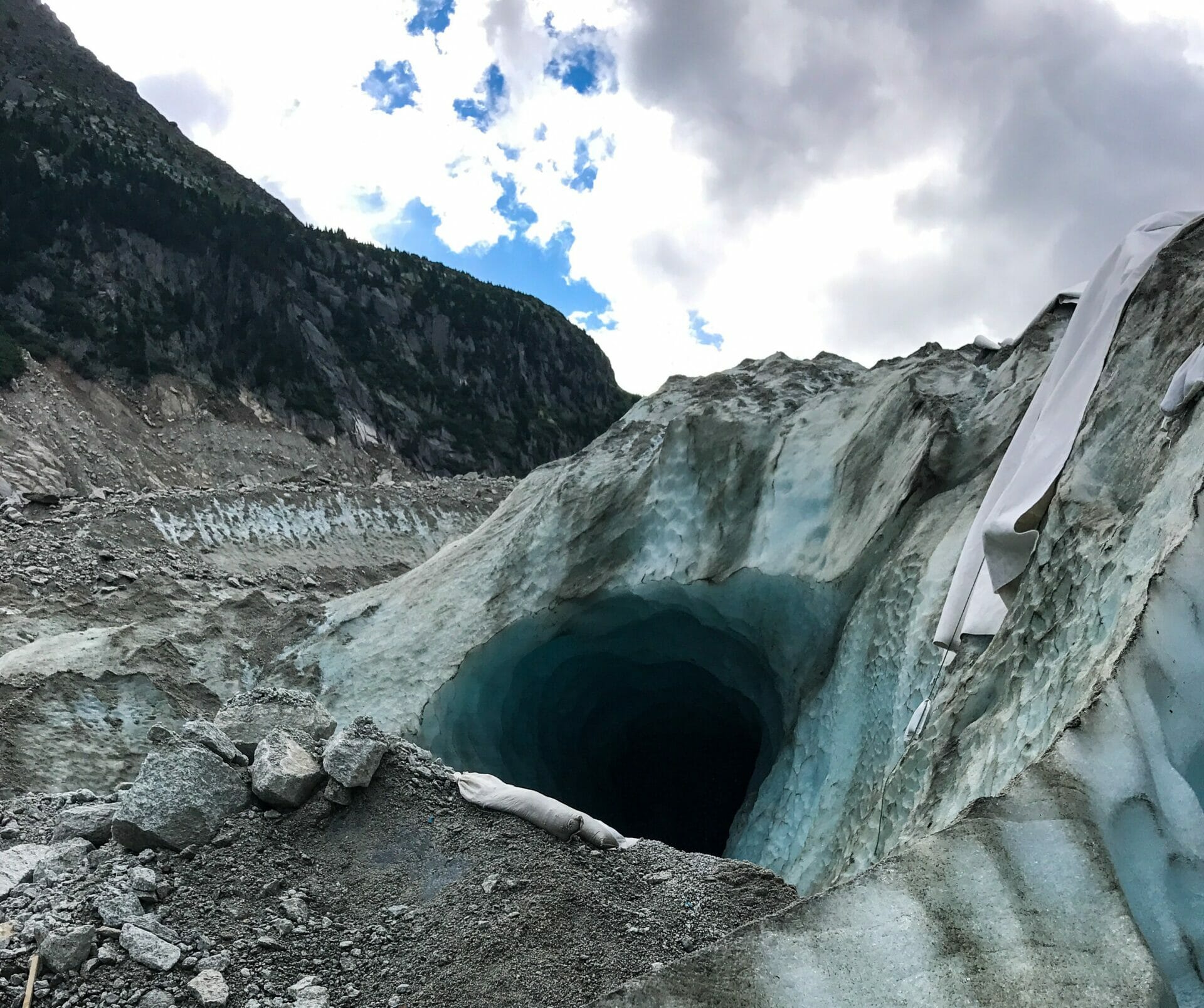 We eventually reach the mouth of the ice cave and are immediately stunned by the volume of water trickling off in all directions. I’m actually not even sure “trickling” is the right word.. maybe more like “gushing”. We soon learn from a nearby sign that the glacier has lost about 800,000,000m3 of water in the last 70 years, which equates to about 30cm of height loss every single year. If you can’t picture just how dramatic that is, Google photos of Mer de Glace in the early 1900s and then compare to my photos..