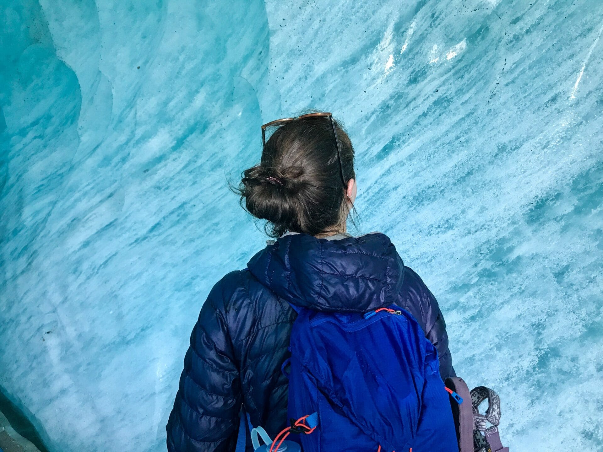 Inside the ice cave, we are plunged into a freezing world of blue. We easily entertain ourselves for an hour just admiring the patterns of ice within the glacier and the amazing clarity of the frozen walls. I also entertain myself by licking the wall, because it looks so beautiful that I can’t resist.