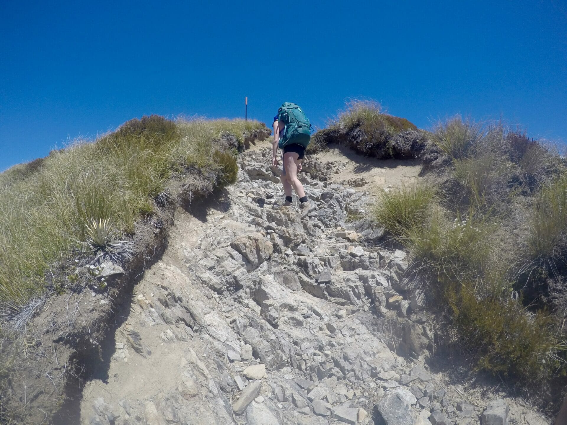 For the first hour, it feels almost fun to skate and ski on small rocks down the face of this cliff, but by hour two, my suspicions return and I start to feel like there’s no way we interpreted these directions correctly. Surely the DOC wouldn’t endorse this sort of trail, there’s a greater chance of dying than actually making it to the bottom. Further investigation of the directions confirms that the DOC did not endorse this route, and we are actually just following the instructions of some rogue hikers, clearly with a death wish.