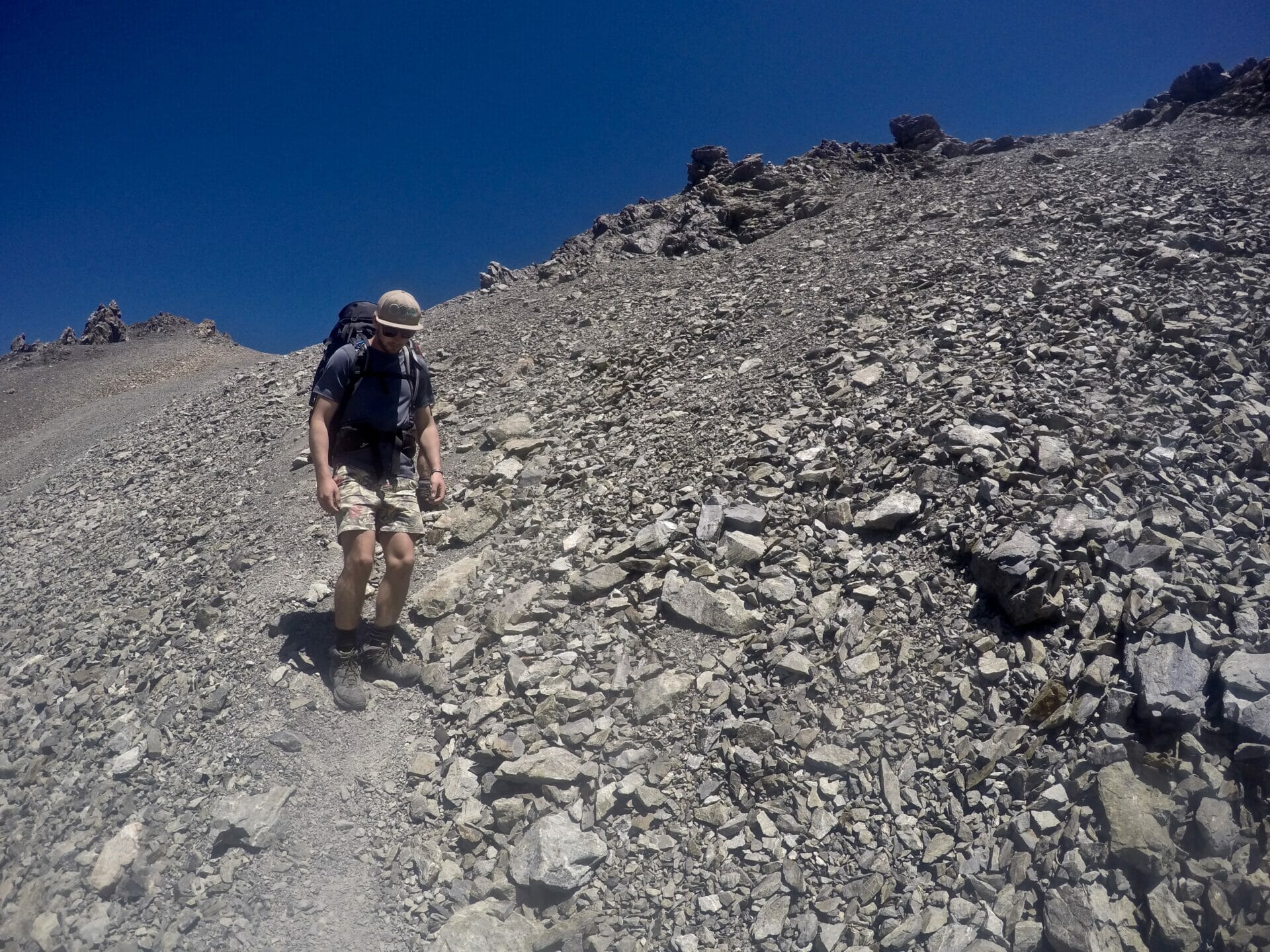 Top tips: Try and keep the weight in your pack to a minimum on this trek— it’s already challenging enough to make the near vertical hike to the Peak and navigate your way down the scree field, but a bulky pack will make it all but impossible to stay upright on the loose rock.