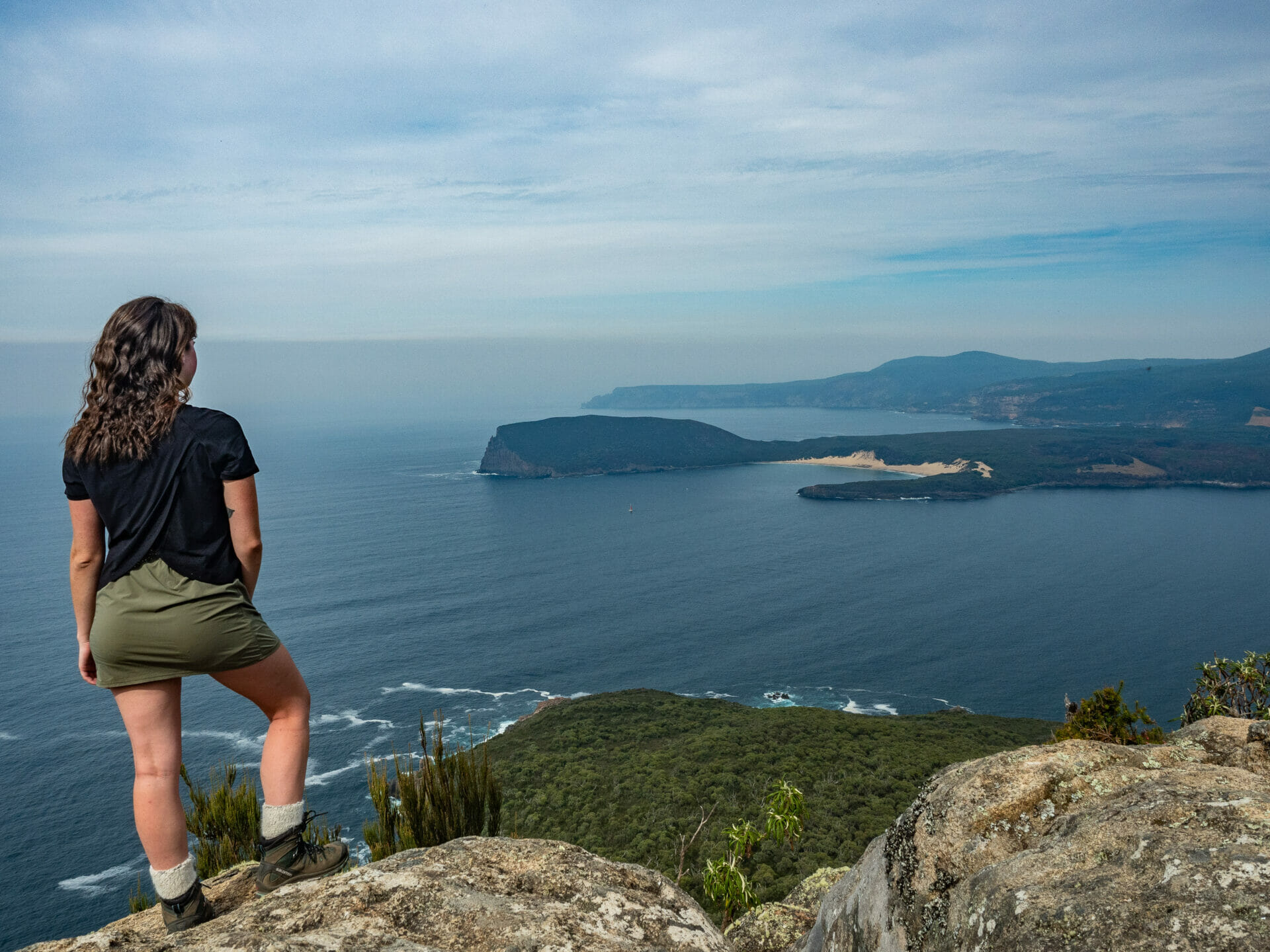 Highlights: Stunning views of Crescent Bay and Cape Raoul from Arthur’s Peak; lush eucalypt forests and rainforests; echidnas rustling around in the bushes; sea cliffs of Munro Bight and distant Cape Hauy