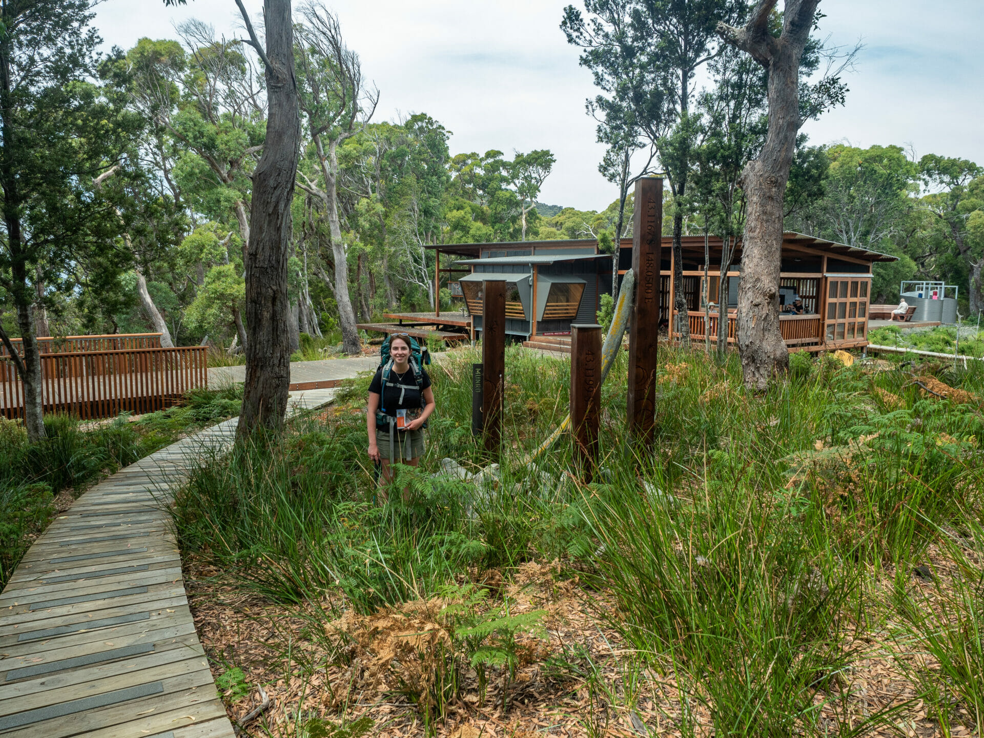 The day flying by as we read all about animals, rocks, and the unique Tasmanian ecosystem, we quickly pass the track junction (with one trail leading off to tomorrow night’s Retakunna Hut). From here, the sign indicates 1hr to Munro Hut, but we know from Ranger Jess that we will be able to walk it much quicker than that. After washing our boots at the station and enjoying our final storyseat of the day to learn about native birdlife, it’s a 30 minute downhill walk to our hut. Even stopping at every single storyseat to read from our book, and taking our packs off to better enjoy several of these, we make it to the end of today’s walk in well under 4 hours.