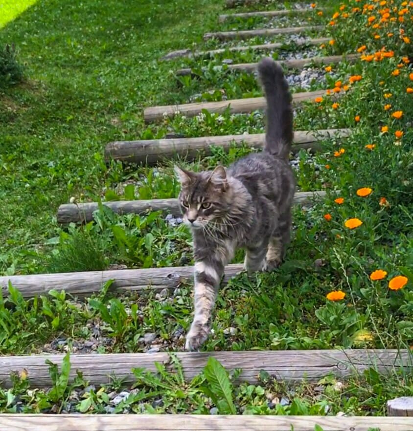 After a wrong turn that we correct within 5 minutes, we continue our gentle descent into Le Champel, which is equally as cute as Bionnassay. Here, we even spot a few French kitties prancing around the gardens, so we have to stop for a few pats.
