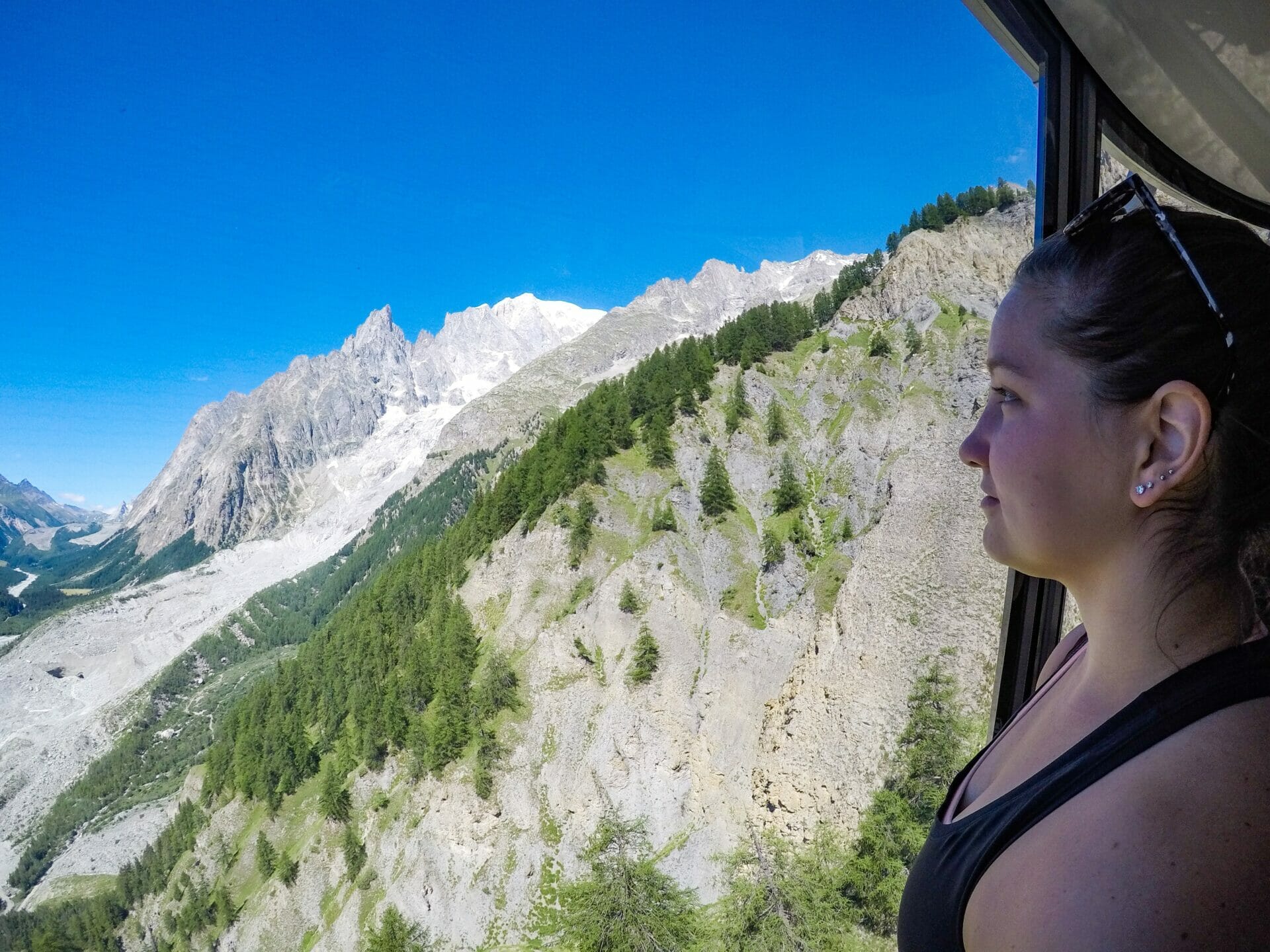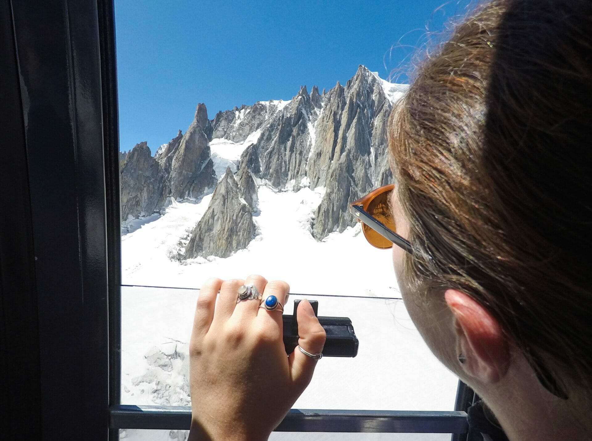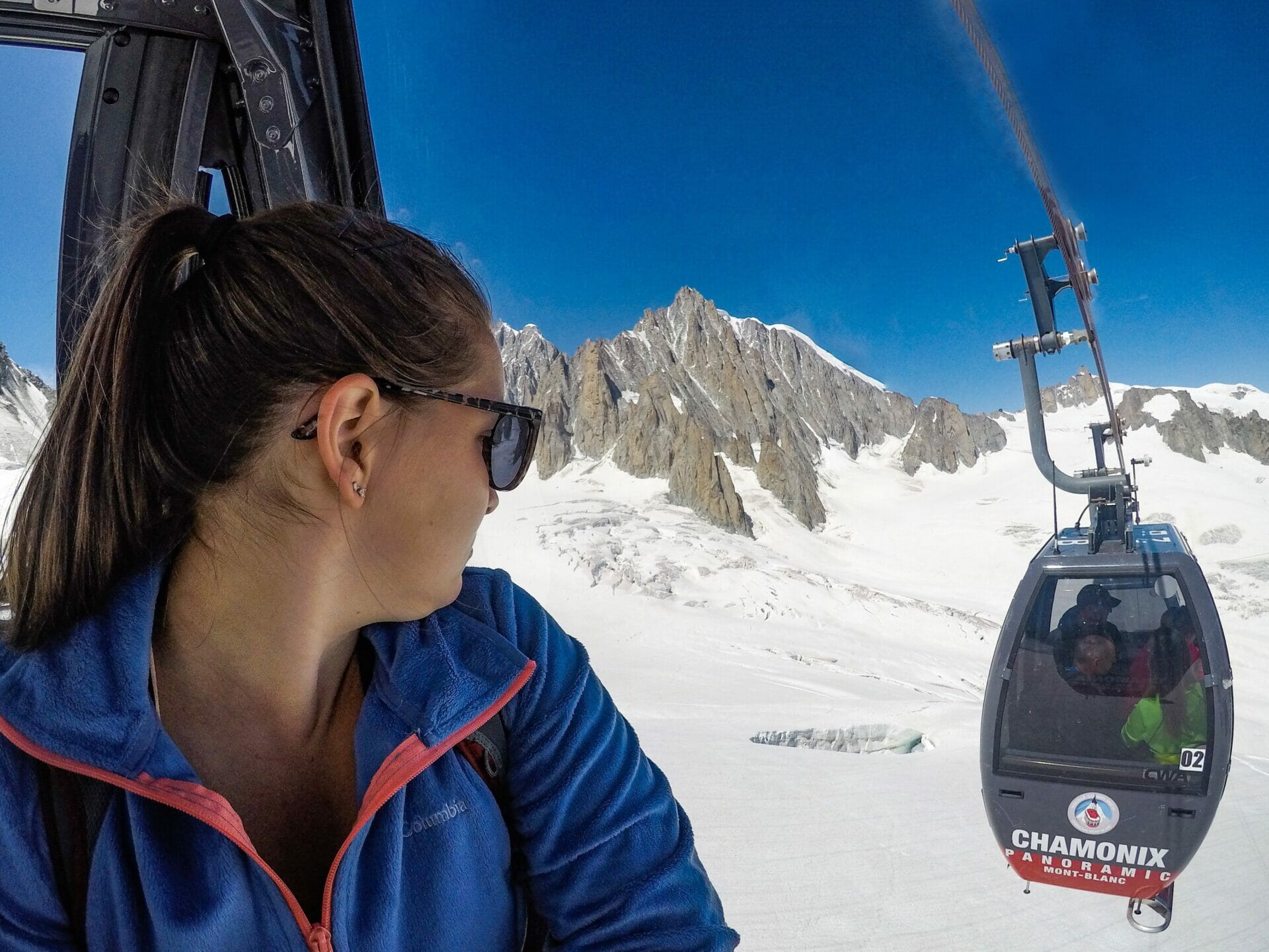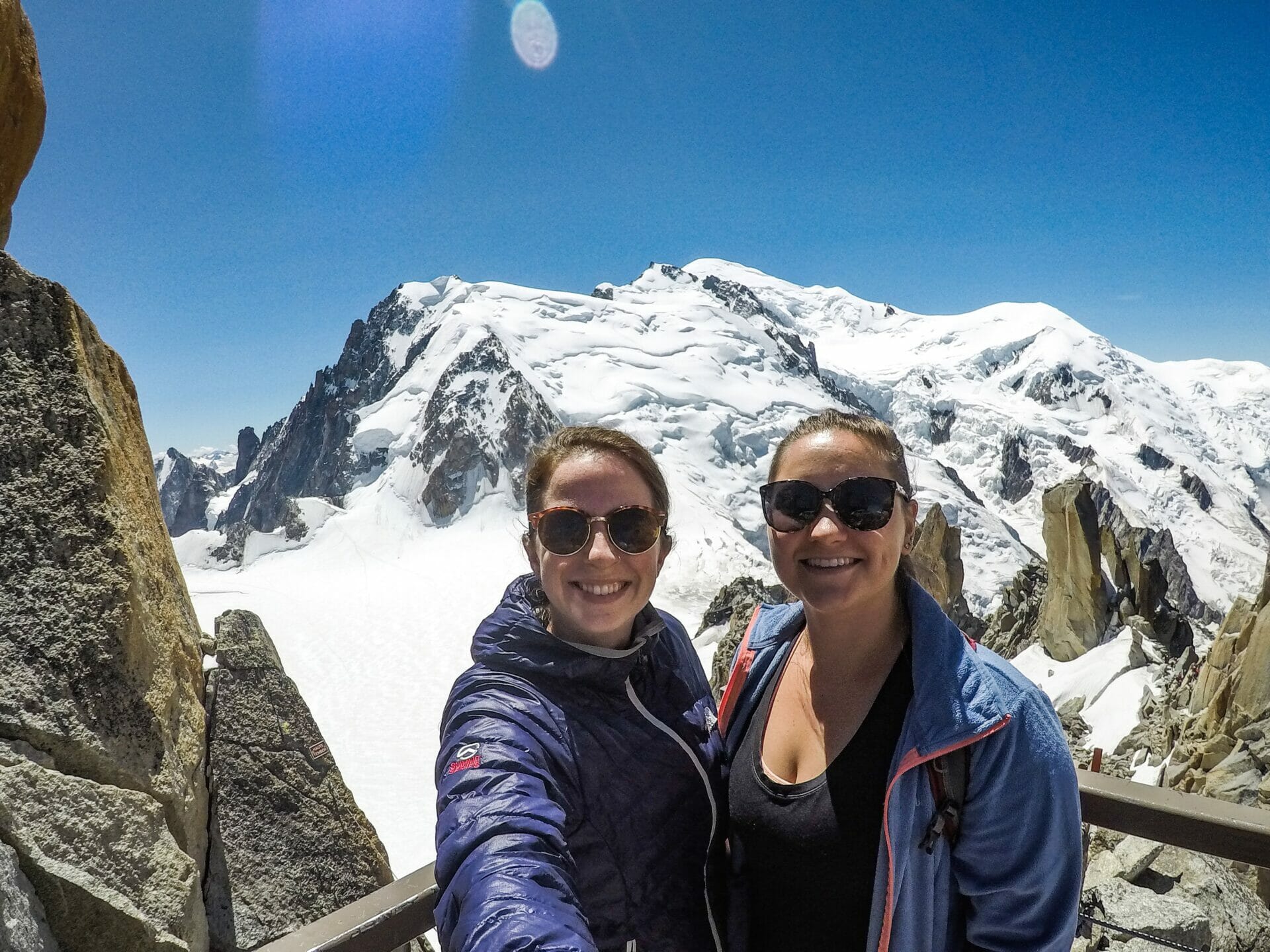 We are both a bit hangry at this point, but the 15 minute wait is well worth it when we reach the top and look nearly head-on at Mont Blanc. Katy reckons one of the smaller peaks is more spectacular, but I just can’t get enough of the main event.