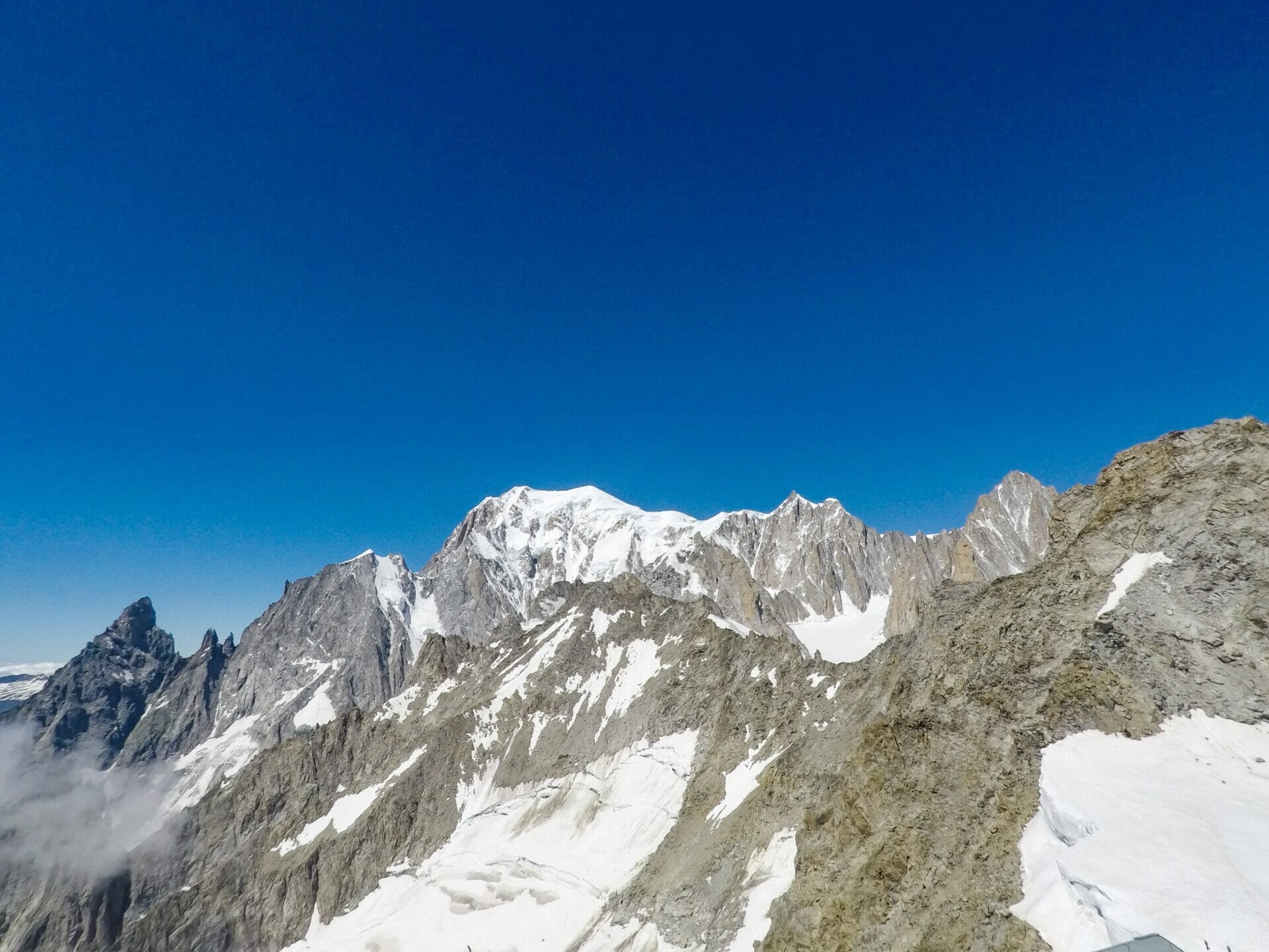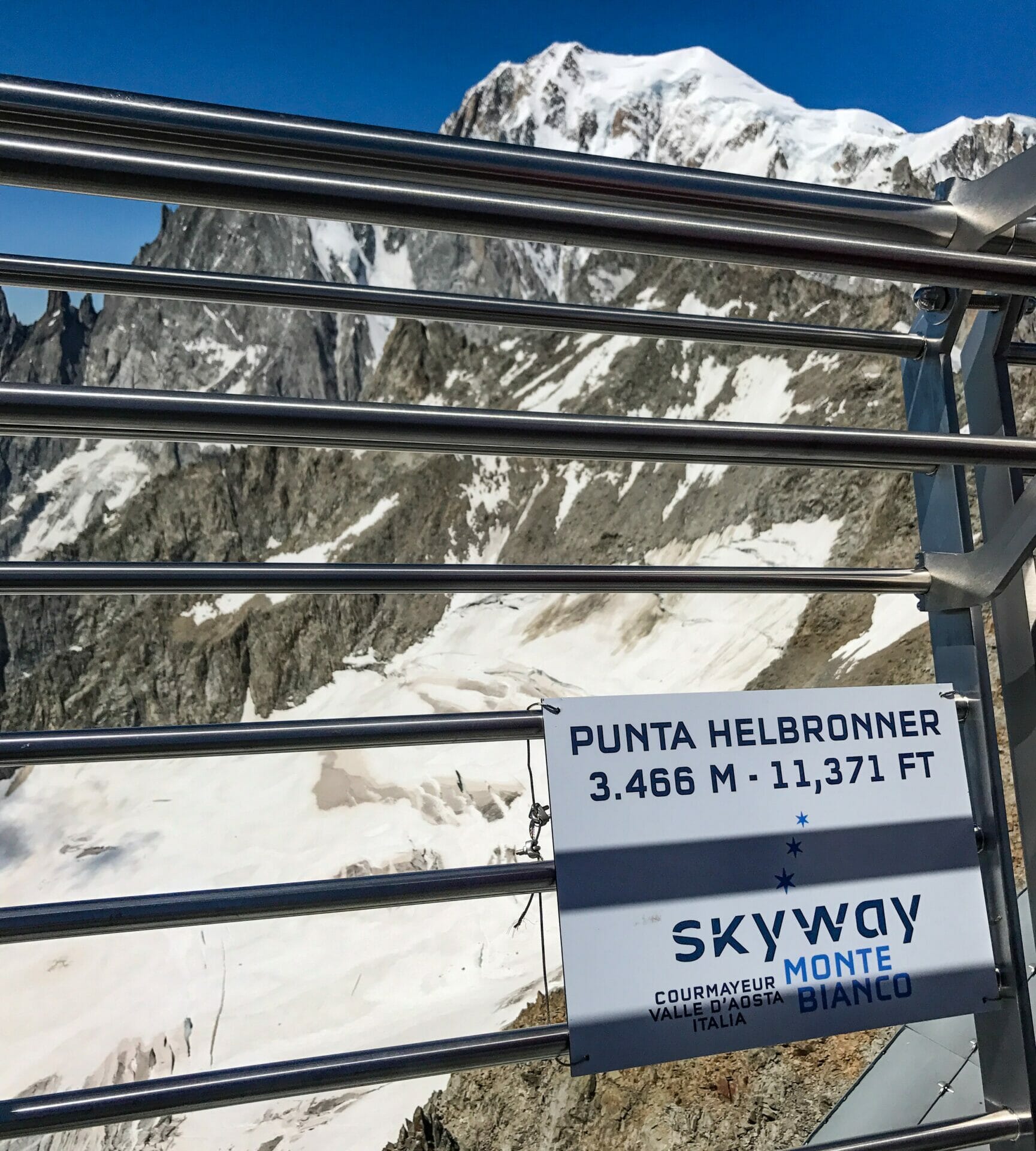 After taking a few dozen photos, we get in line for the second cable car ascent up to Punta Halbronner, which sits much closer to Mont Blanc at 3,466m. This point is even more spectacular than the last, and we spend a bit longer here snapping photos of the imposing Monte Bianco, as the Italians call it.