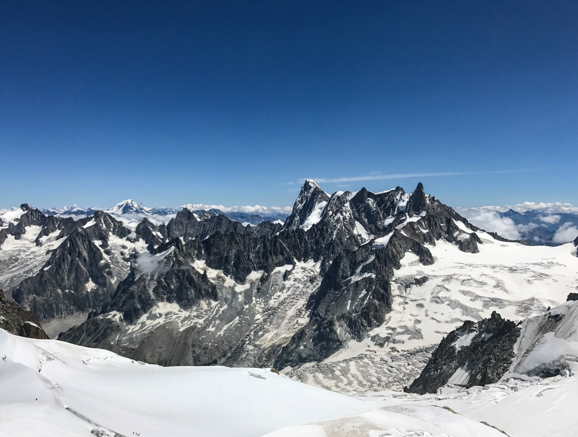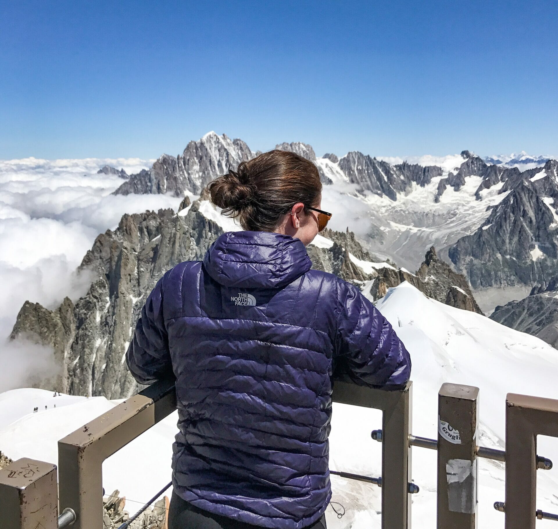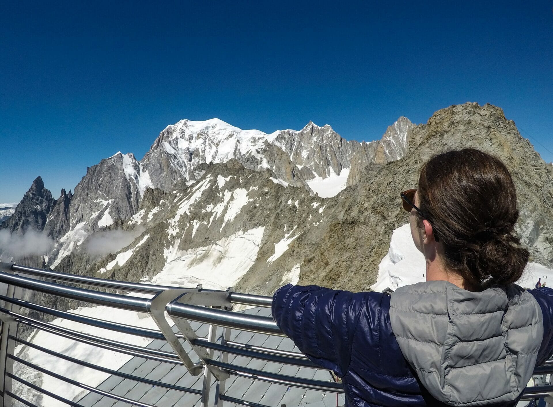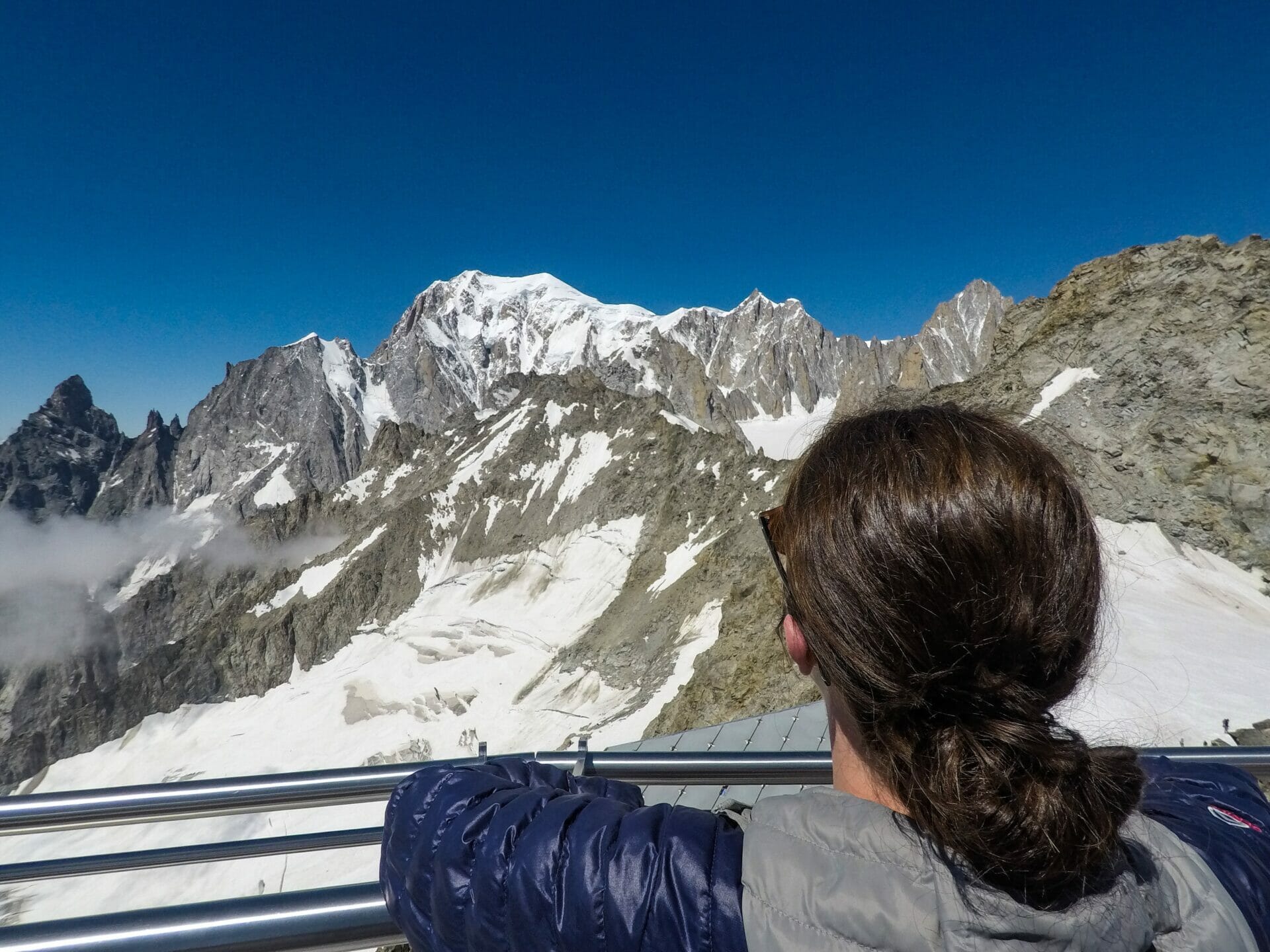 Once at the top, we are let out of the gondola into a rambling network of platforms that offer views of Mont Blanc from every possible angle. I’m like a child at Disneyland. We spend a good hour exploring all sides of the mountain, as well as the other spectacular peaks in the range, before we hop into a very lengthy line to take the lift up to the uppermost viewing point.